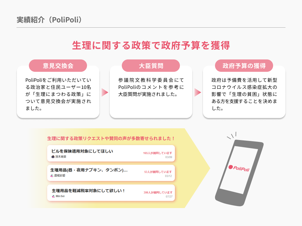 - 政治家に声を届けるウェブサイト『PoliPoli』https://polipoli-web.com/