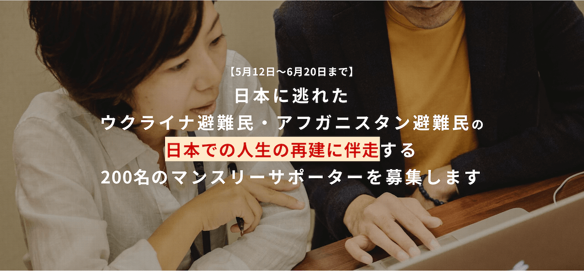 日本におけるウクライナ・アフガニスタン避難民の人生再建に伴走するために。200名のマンスリーサポーターを募集します