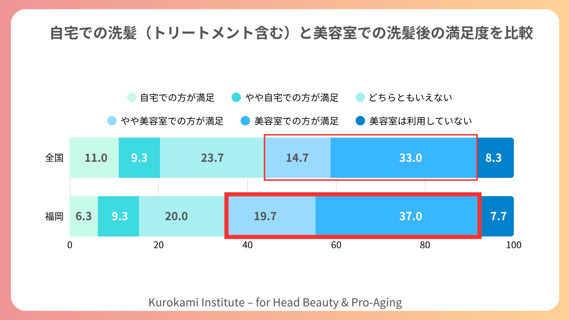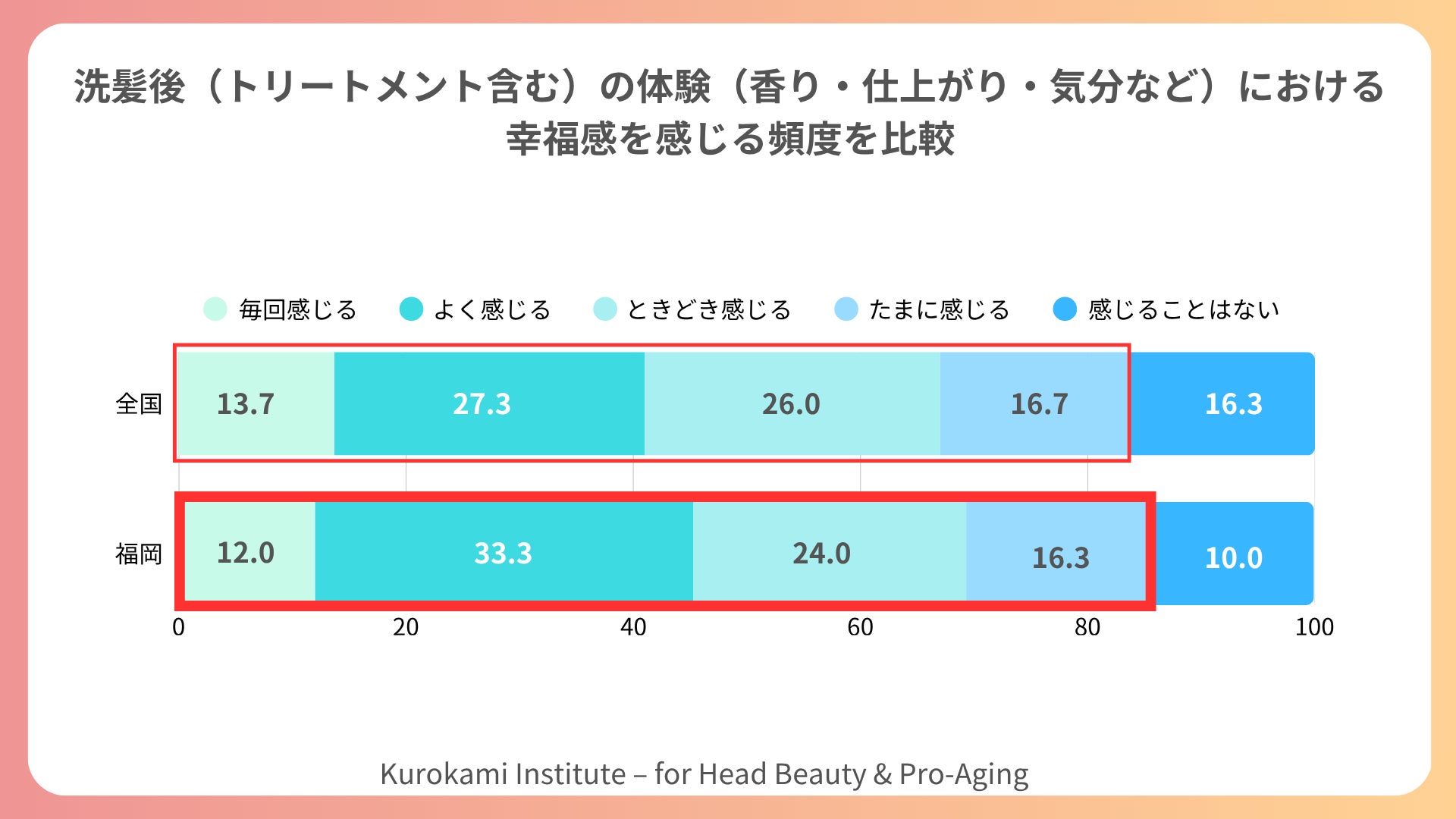 クロカミ研究所では、先日発表した全国800名(うち福岡300名)を対象とした調査で、「シャンプー後に幸福感を感じる」と答えた女性が8割を超える結果が得られました(*1)。なかでも福岡の女性は、「美容室でのシャンプー満足度が高い」「洗髪後にリラックスできる」といった回答が目立ち、“洗う時間”を心のケアとして大切にしていることが浮き彫りになりました。