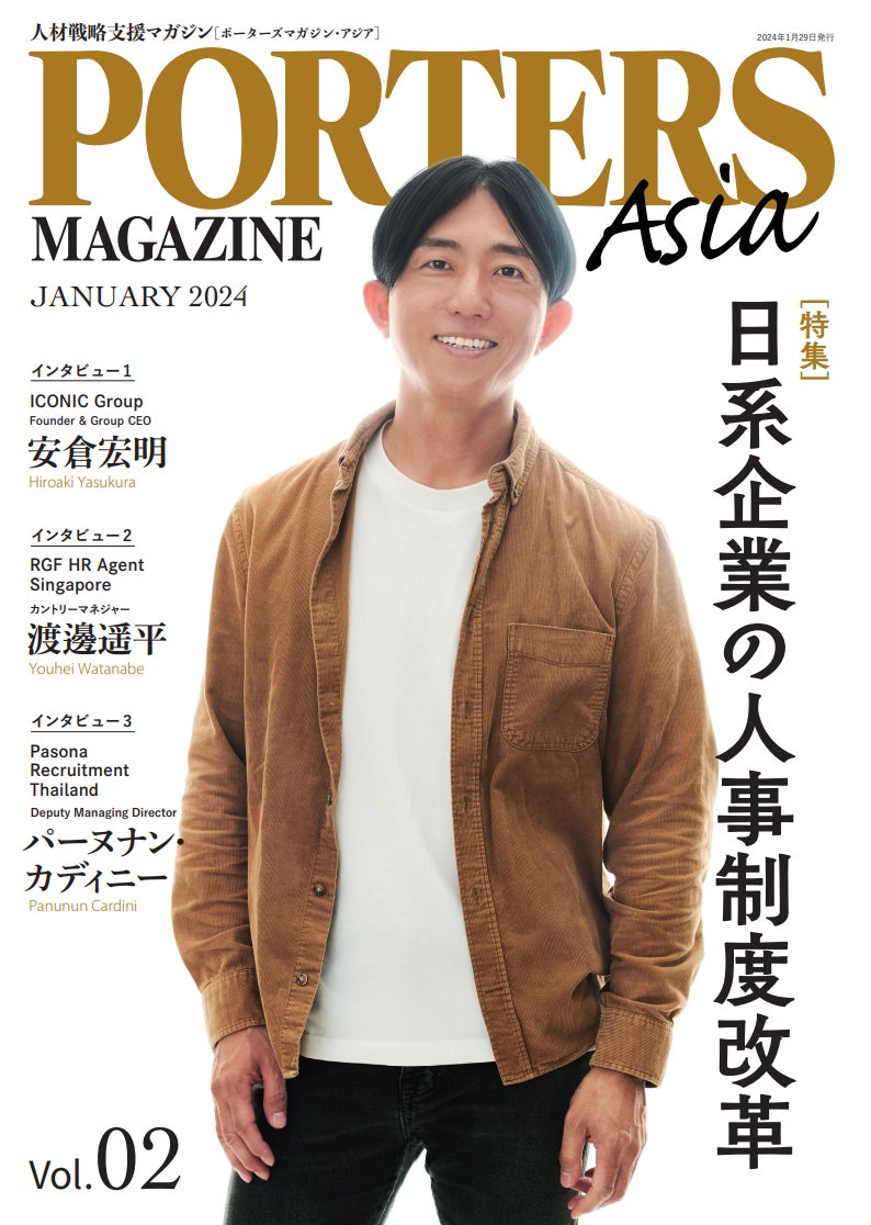 PORTERS MAGAZINEは、『PORTERS MAGAZINE Staffing』に加え、人材紹介にフォーカスした『PORTERS MAGAZINE Agent』、そして海外日系企業の人材戦略を支援する『PORTERS MAGAZINE Asia』と3つの紙面を発行し、国内外の最新の採用戦略や労働市場の動向をお伝えしてまいります。