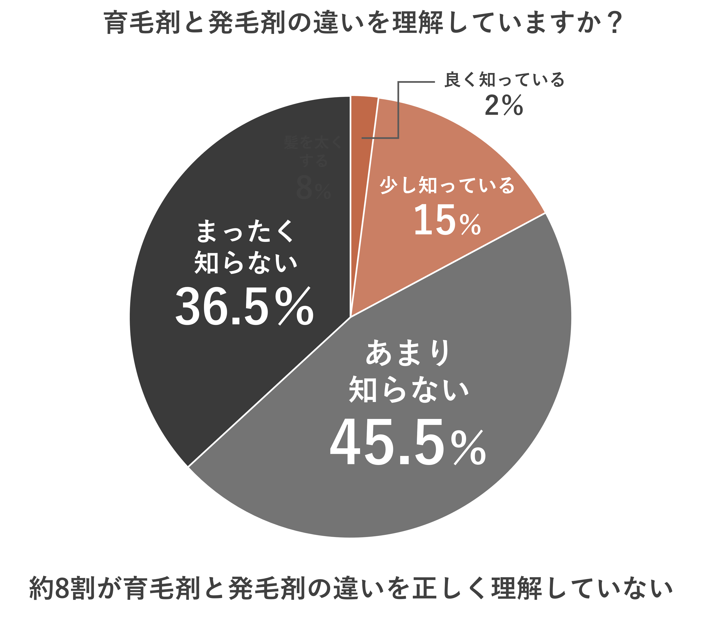 また、育毛剤と発毛剤の違いについて「理解していない」と回答した人はまさかの約8割!!