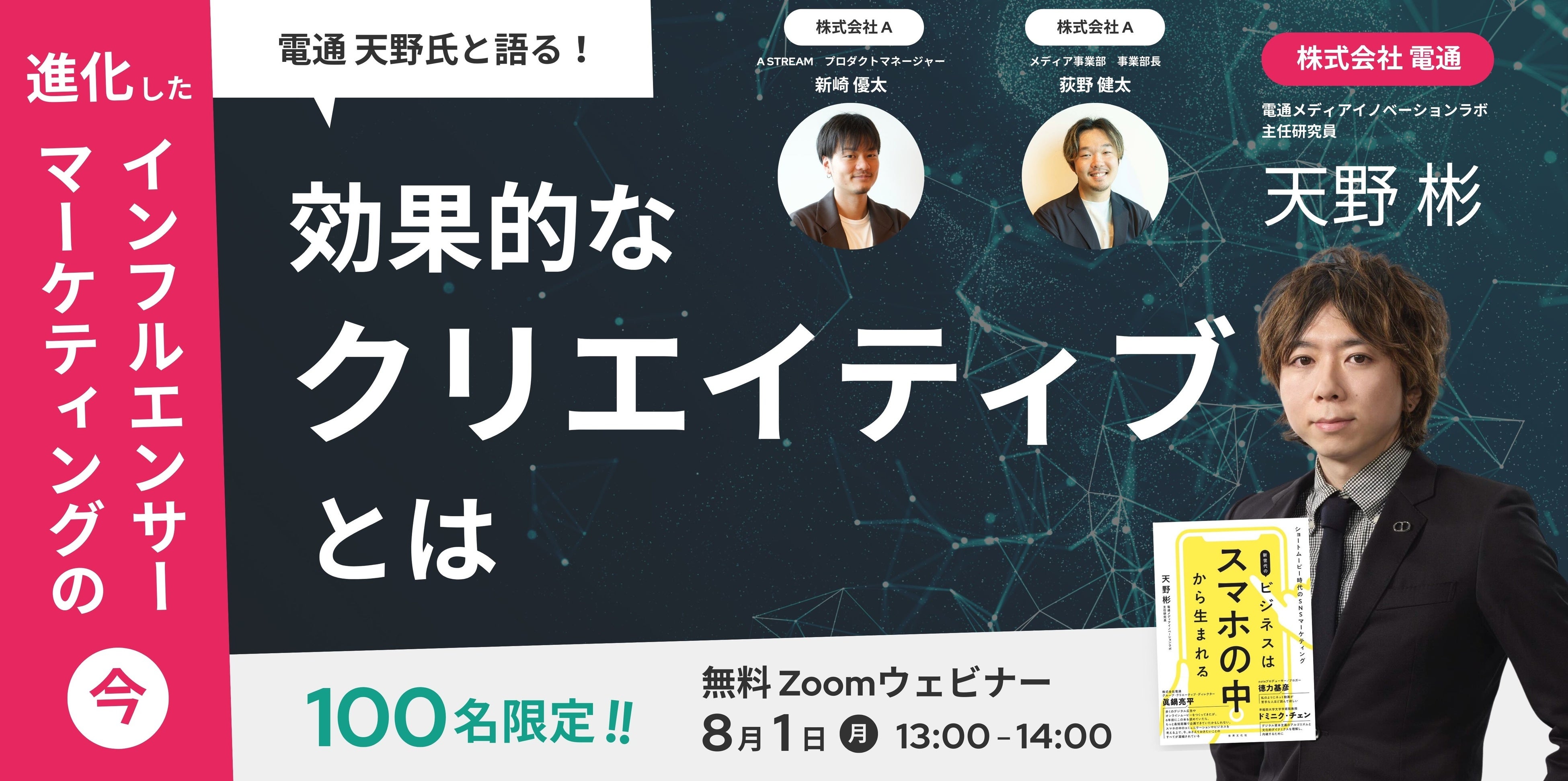 【100名限定】インフルエンサーマーケティングの"今"を大解剖!『ビジネスはスマホの中から生まれる』の著者である電通・天野彬氏とウェビナーを開催