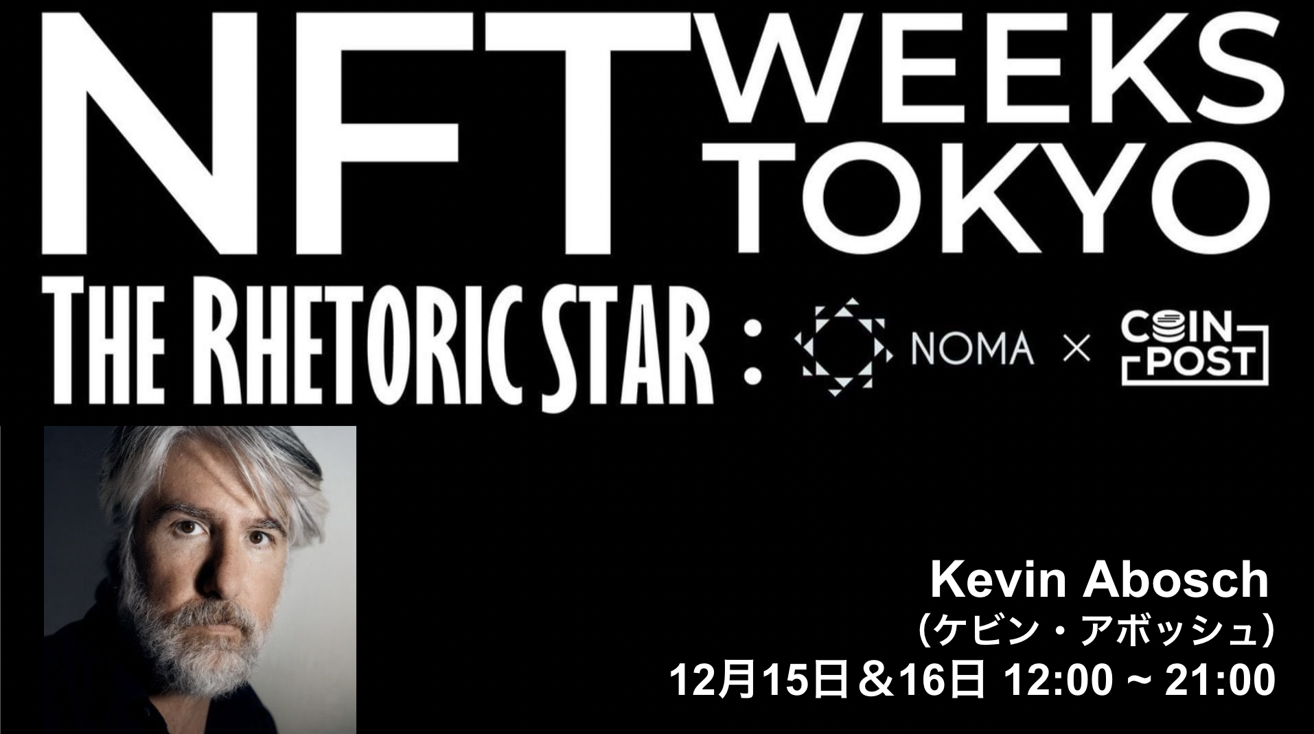 東京・銀座で開催されているNFTイベント「NFT WEEKS TOKYO」へ、ケビン・アボッシュ(Kevin Abosch)氏の作品が、12月15日・16日に展示されますのでお知らせ致します。