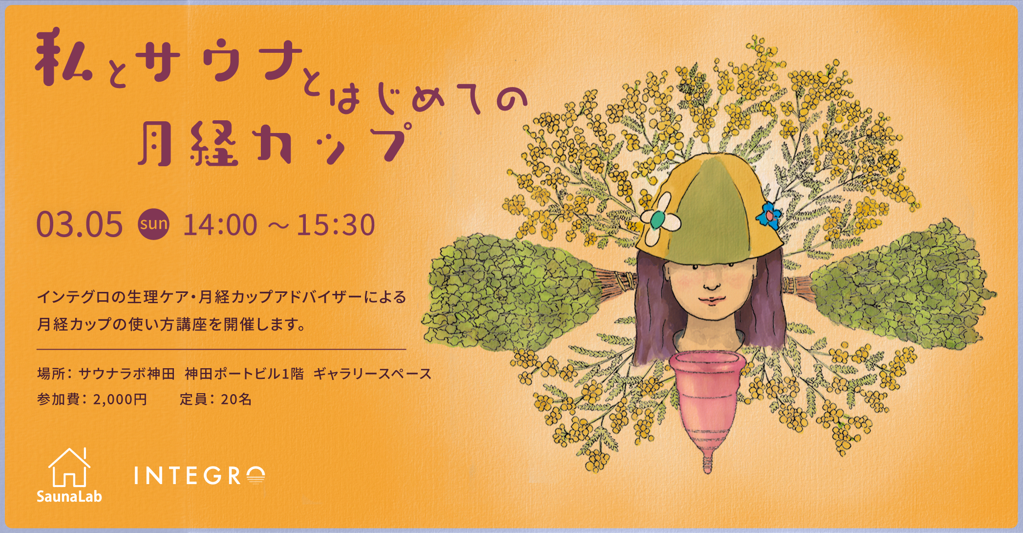 月経カップや吸水ショーツを販売するフェムテック企業、インテグロ株式会社(本社:東京都目黒区、代表取締役 神林美帆、以下「インテグロ」)は、株式会社サウナラボ(本社:愛知県名古屋市、代表取締役社長:米田行孝、以下「サウナラボ」)と、国際女性デーに合わせたコラボ企画「#私とサウナと月経カップ」を実施します。2023年3月5日(日)には、サウナラボ神田にて月経カップの使い方講座「私とサウナとはじめての月経カップ」を開催します。