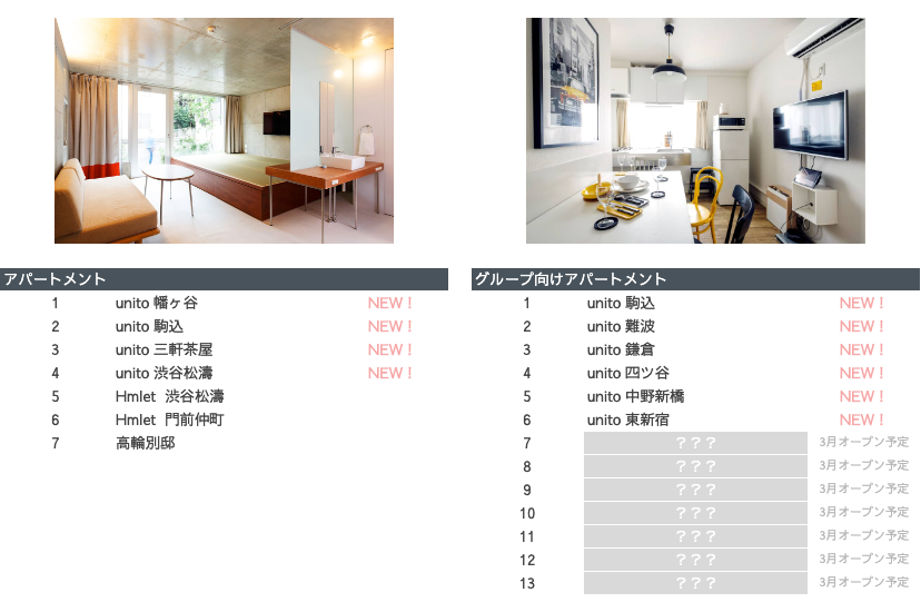 住んだ分だけの家賃で暮らせる部屋「unito」、新たに9つの直営施設をオープン