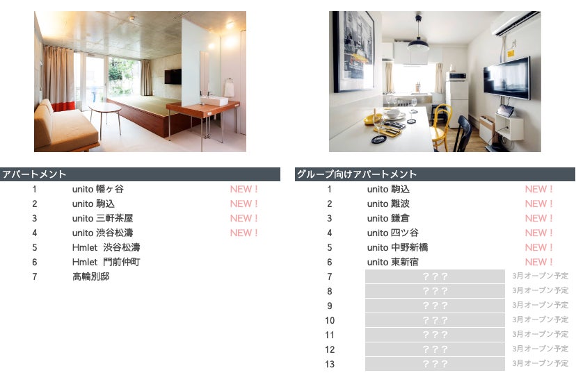 なお、1施設あたり複数のお部屋を掲載しております。本リリースでは、各施設1室を紹介いたします。