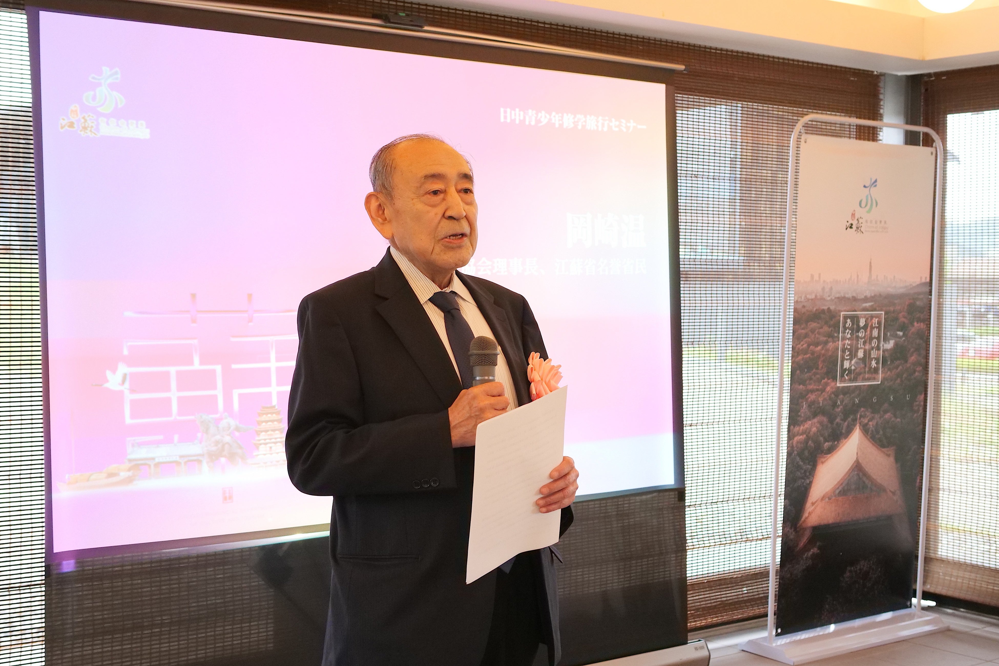 数十年にわたり中日の友好交流に尽力してきた岡崎温氏は、2018年には「江蘇省名誉住民」の称号を授与されています。彼はセミナーで江蘇への愛を表明し、中日の青少年間の直接的な交流の重要性を強調し、中日の青少年が友好的な国際文化交流の環境の中で共に成長し、互いを理解し合うことを心から願っています。
