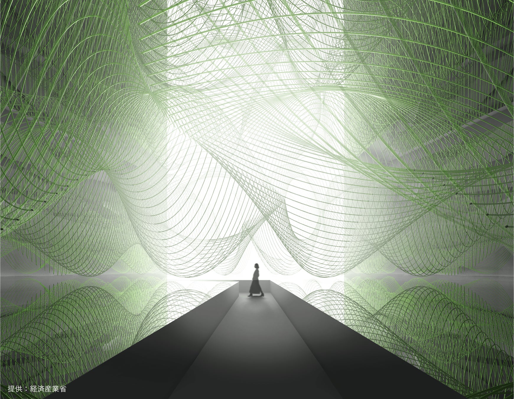 日本館は「いのちと、いのちの、あいだに」をテーマに、「Farm Area(ファームエリア)」「Plant Area(プラントエリア)」「Factory Area(ファクトリーエリア)」の3つのエリアで構成されています。円環状の館内は、生態系の循環や資源の循環など、あらゆる「循環」を演出する仕掛けが施されており、来場者自身もあらゆるいのちとの繋がりの中で生かされている存在として、地球という大きな循環の一部であることに気づかされる造りとなっています。