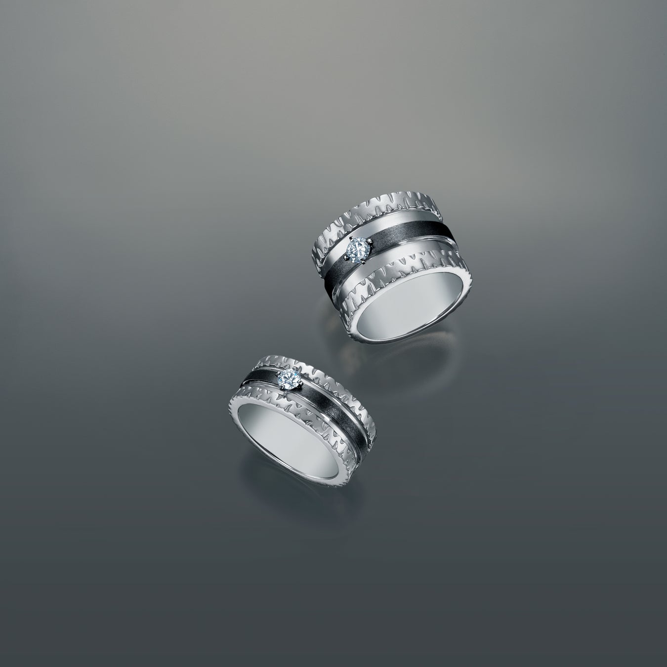 「NAMIB」リング:右) 1,540,000円(K18WG,DIA 0.3ct) 左) 990,000円 (K18WG,DIA 0.2ct)