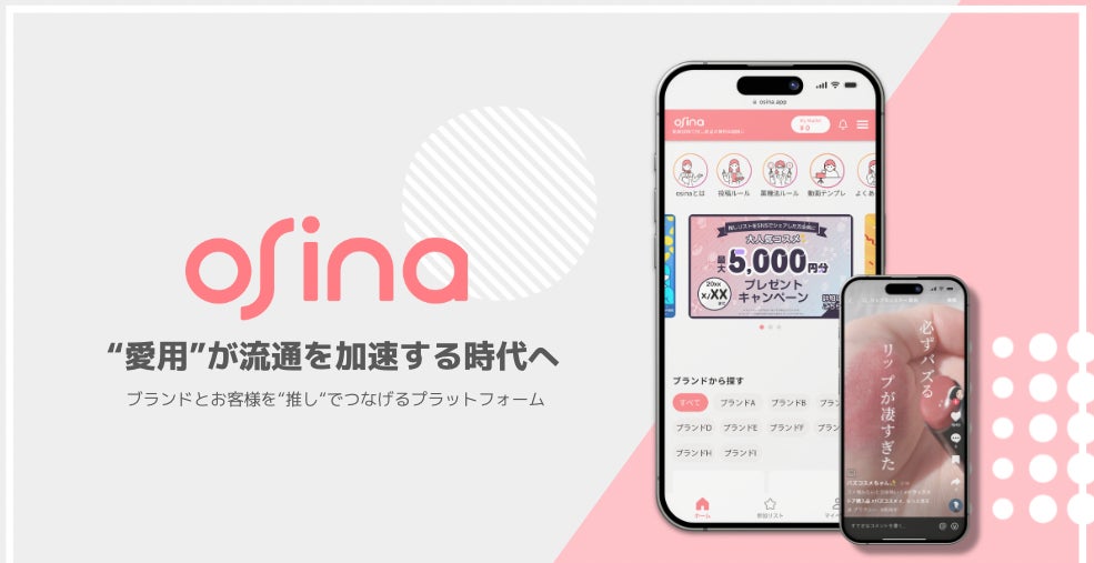osinaはブランドとお客様を“推し”でつなげるプラットフォームです。ユーザーはosinaに掲載されている商品の中から、愛用品や気になる商品を購入しSNSに動画を投稿。ユーザーは投稿した動画の再生数によって報酬を得ることができます。ブランド様にとっては、一般的な「インフルエンサー」ではなく、一般消費者層の愛用者 = ファンによるFGC (Fan Generated Contents) を大量に、効率よく創出できます。
