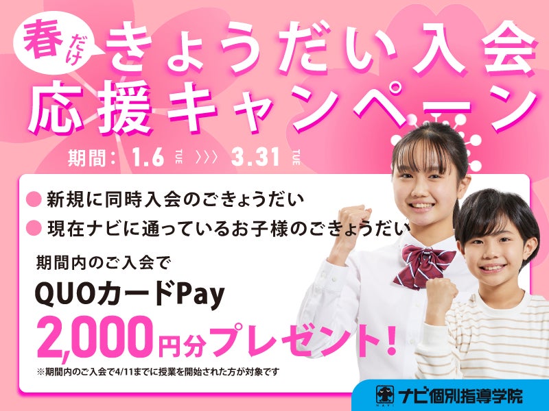 【春限定】きょうだいで新学年のスタートダッシュ!ナビ個別指導学院、「きょうだい入会応援キャンペーン」を1月6日より開催。