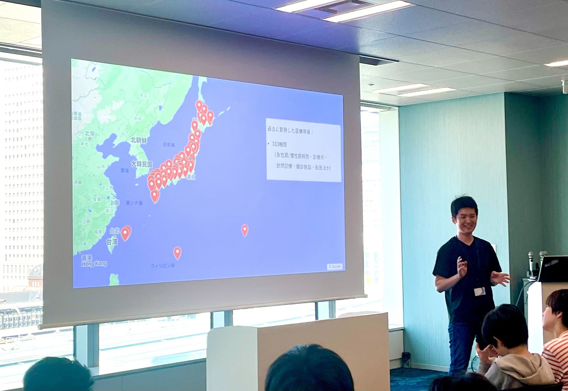 沖山は医師と起業家というユニークな自身のキャリアについて、またアイリスのミッション「みんなで共創できる、ひらかれた医療をつくる。」に至った起業背景や、AIを活用し様々なステークホルダーを通じて共創する未来の医療について、ワークショップを交えた講義を行いました。