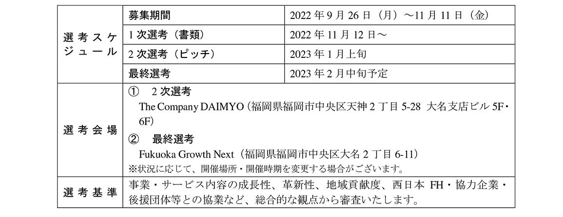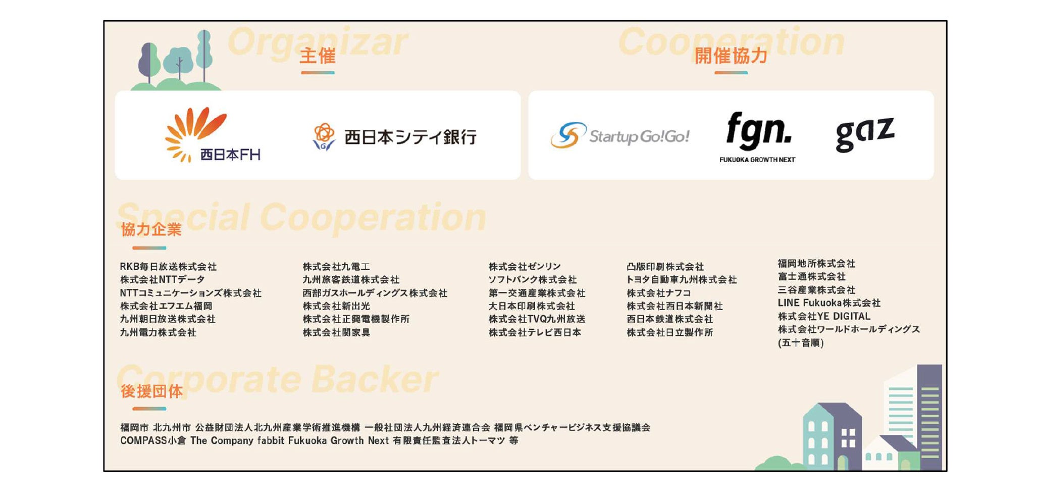本コンテストは、西日本FHグループや協力企業・後援団体等との協業機会を創出し、地域経済の活性化や地域経済の課題解決に繋がるビジネスモデルの創出を目指すオープンイノベーション型のビジネスコンテストです。