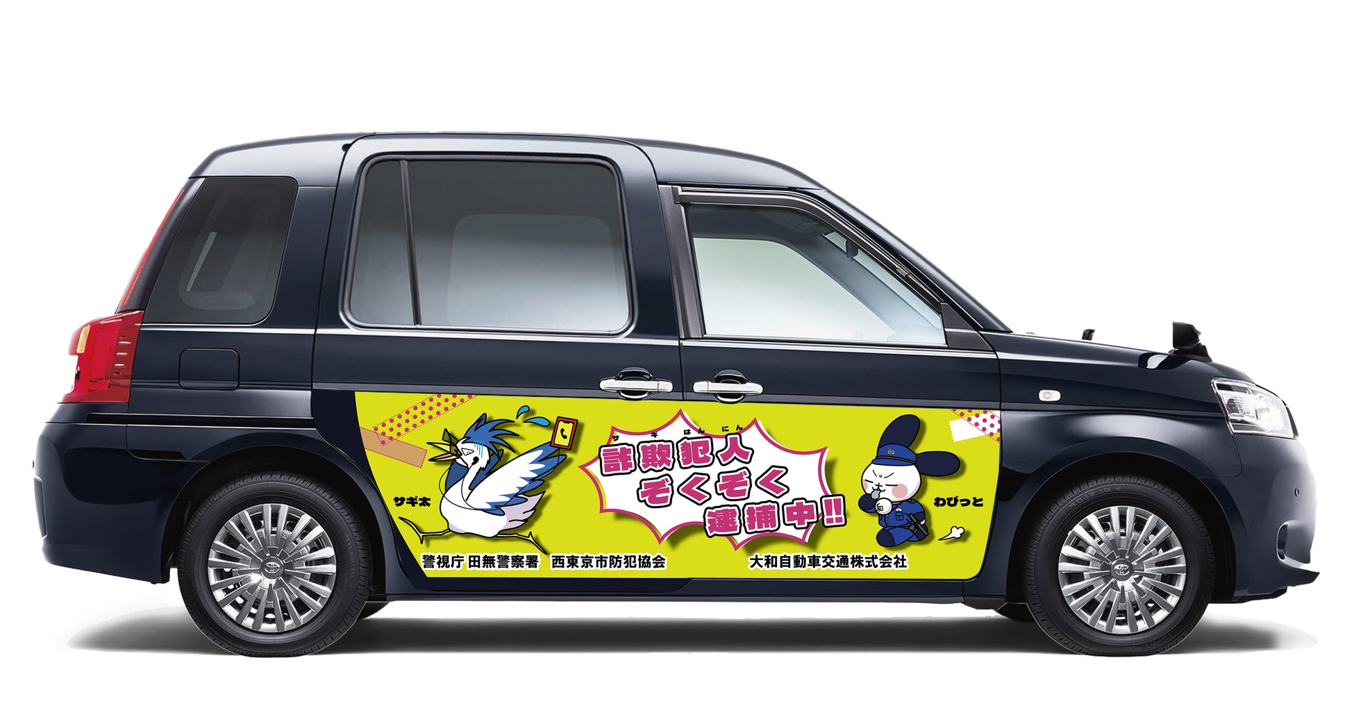 警視庁田無警察署・西東京市防犯協会と連携し、特殊詐欺防止ラッピングタクシー走行を開始