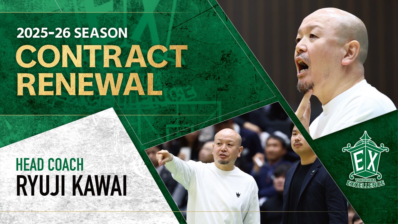 この度、横浜エクセレンスでは、河合竜児ヘッドコーチと2025-26シーズン(※来シーズン)の契約を更新しましたのでお知らせいたします。