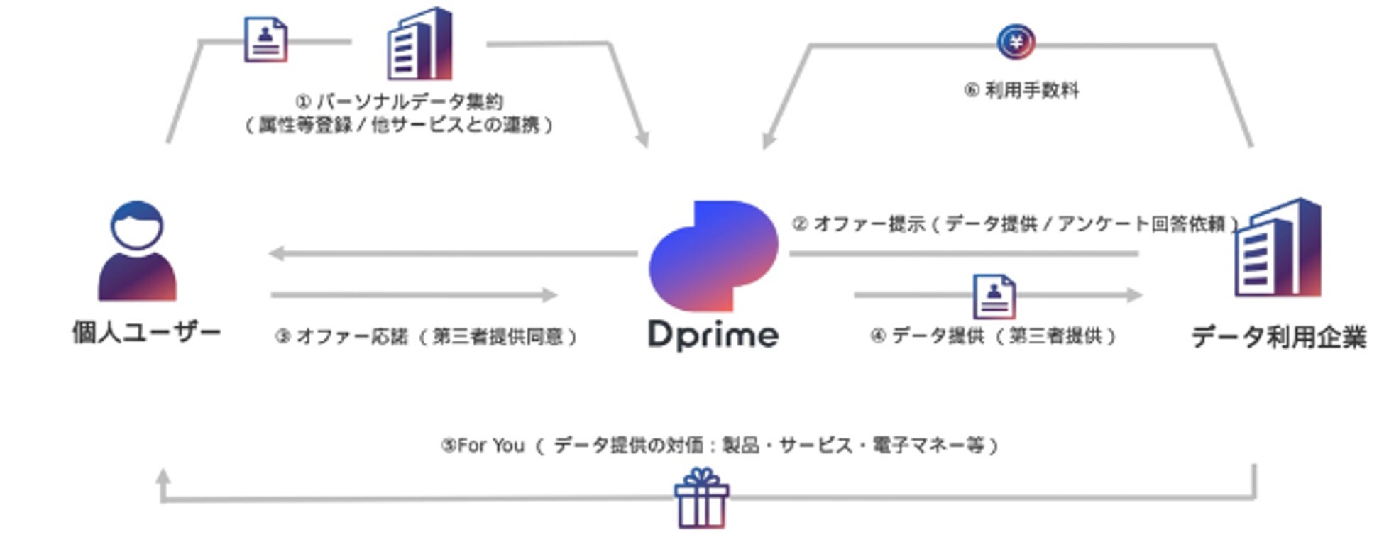 企業・団体等は、個人から提供されたデータを活用し、社会課題解決に向けた商品・取組等に生活者の声を取り入れることで、より質の高いサービスを提供することが可能となります。Dprimeは、顧客へのプライバシーを保護しながら、個人ユーザーと企業・団体等とのデータによる共創を通じて、社会課題解決に向けた取組へ貢献していきます。