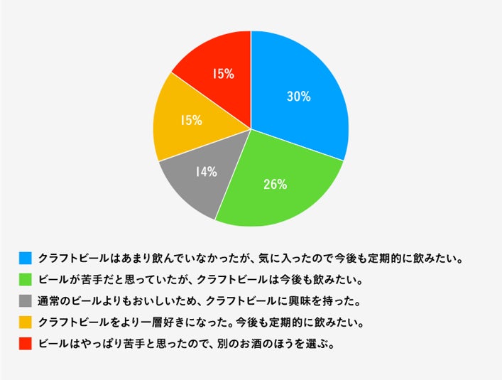 本プロジェクトには、クラフトビールをあまり飲んでいなかった方やビールが苦手な方にも多く参加いただきました。その結果、参画者の85%が、自身のデータを参考にクラフトビールが作られたというを体験を通して、クラフトビールへの興味関心や購入意向度が上昇したと回答しました。