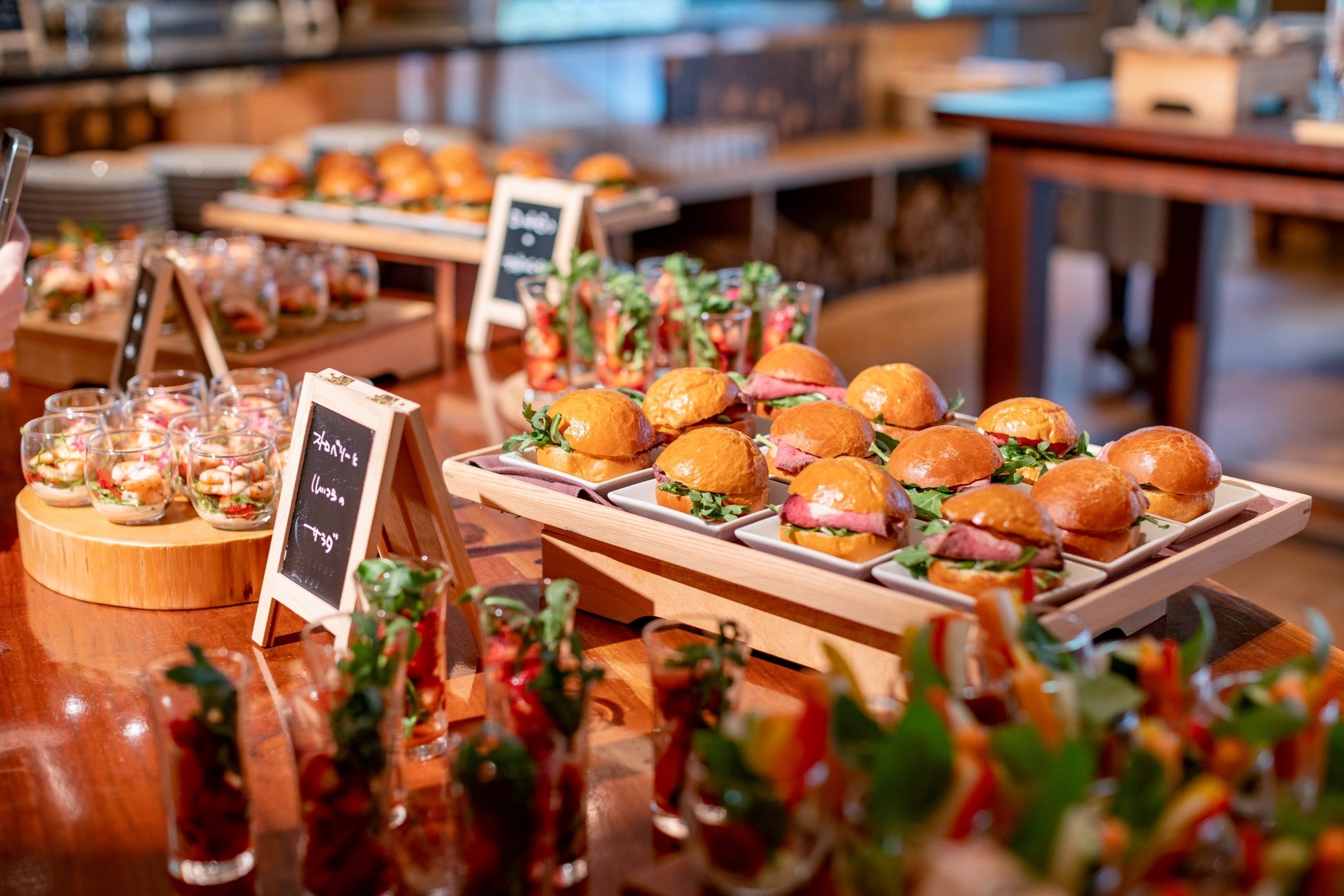 お食事は、カフェ 33のマイケルシェフが考案。京の雫の甘酸っぱい味わいを引き出したストロベリーサラダや海老と苺のカクテルのほか、ストロベリーマヨネーズを添えたローストビーフバーガーやラザニアなどリッチな味わいをご用意いたします。