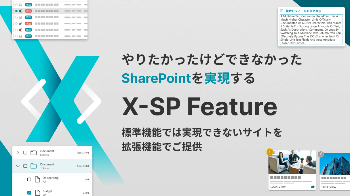 X-SP Featureは、SharePointをお使いの皆様の「あったらいいな」を形にするために生まれたSharePointアドオンサービスです。