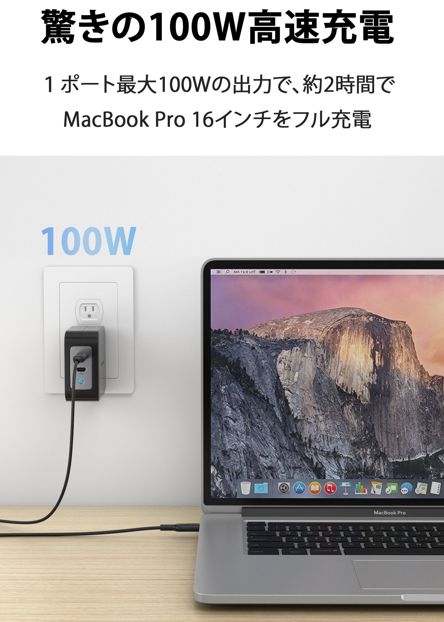 100W パワフルでコンパクトなUSB急速充電器 【USB-C × 2ポート 合計2ポート】