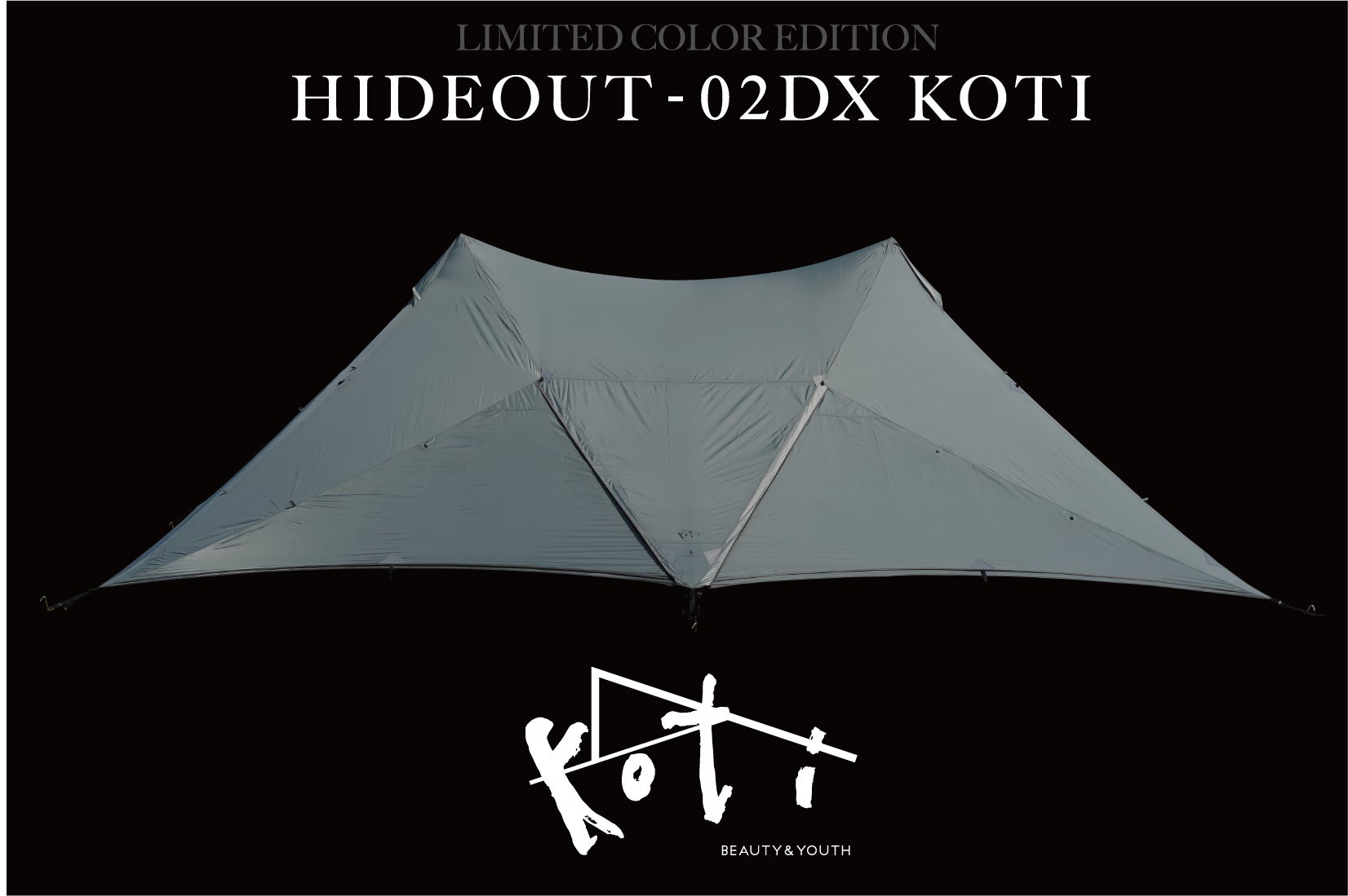 美しい曲線で構成されたラウンドデザインと、極限まで自由度を高めた大型シェルターHIDEOUT-02の新色となる”HIDEOUT-02/02DX kotiモデル”をリリースします。