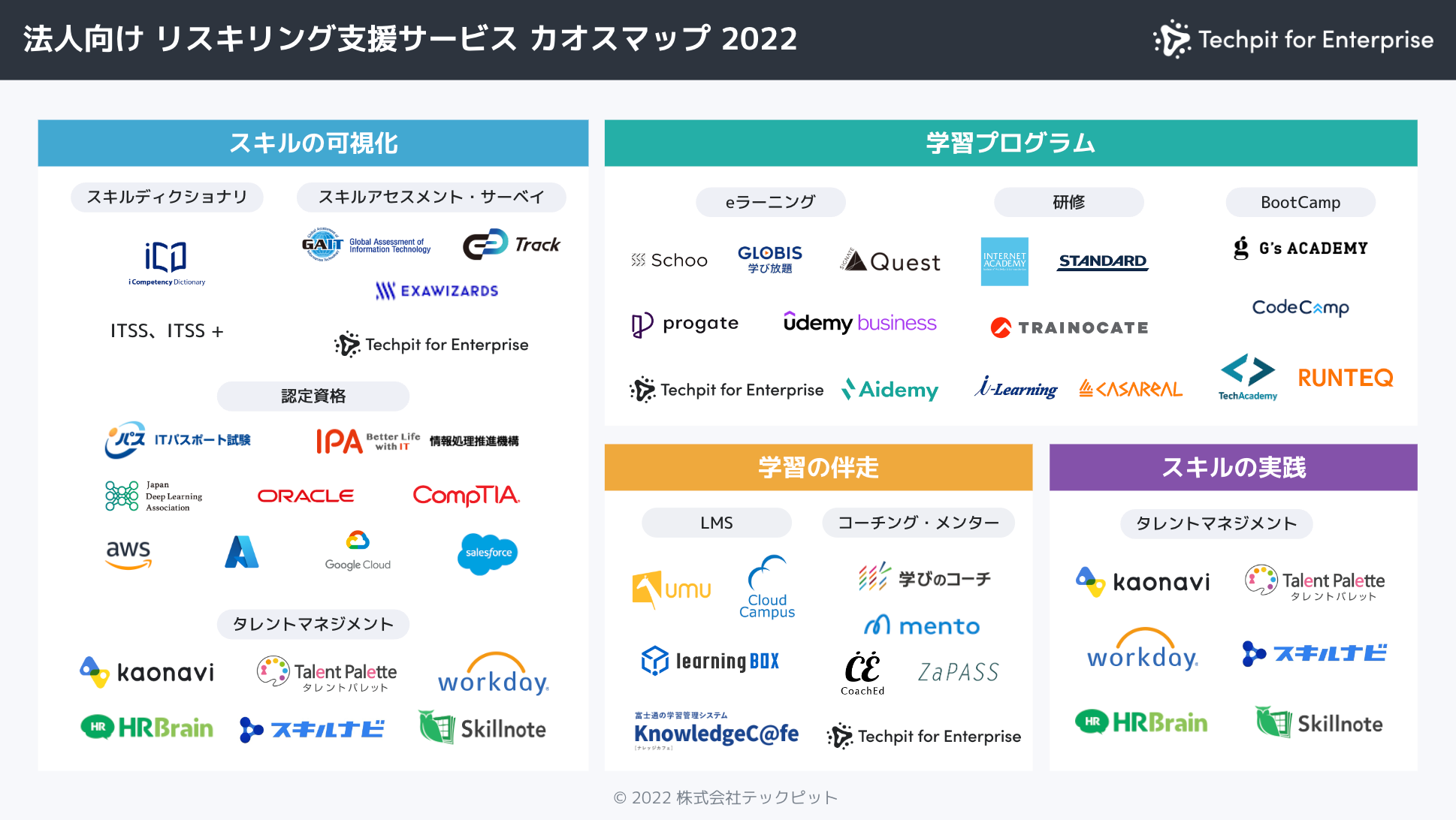 株式会社テックピット、法人向けのリスキリング支援サービスをカテゴリーごとに分類した『 法人向け リスキリング支援サービス カオスマップ 2022 』を作成