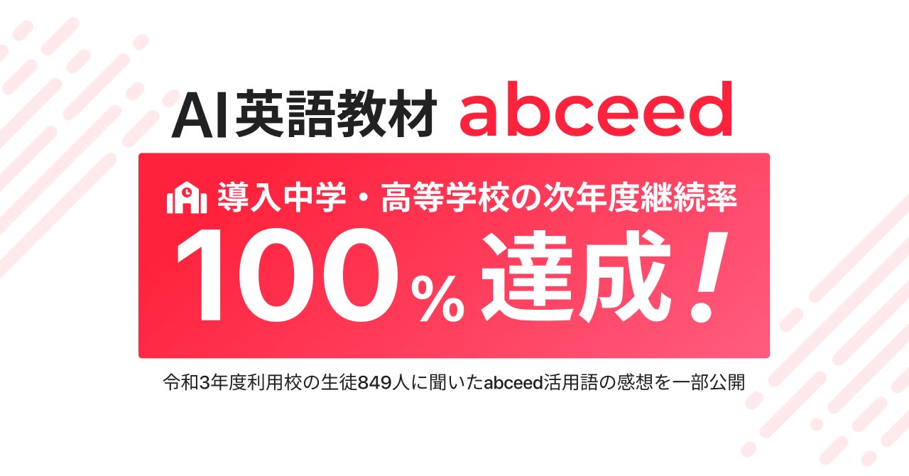 AI英語教材 abceed、令和3年度から導入開始した中学・高等学校の次年度継続率100%! 令和3年度利用校の生徒849人に聞いたabceed活用後の感想を一部公開