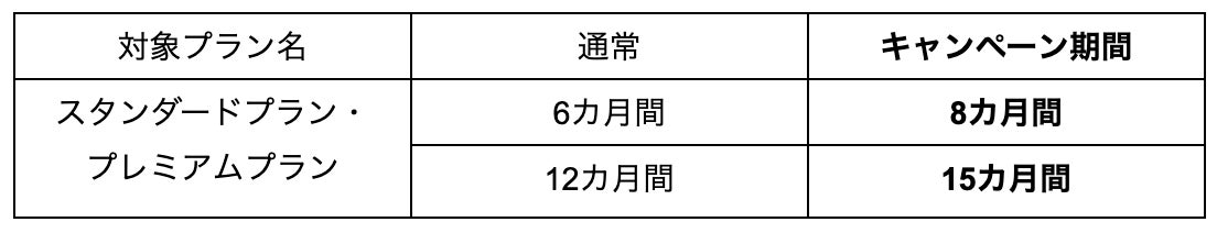 これを記念する企画の第一弾として、2022年11月末までの新規お申し込みで、スタンダードプランとプレミアムプラン*の利用期間を延長できるキャンペーンを実施します。