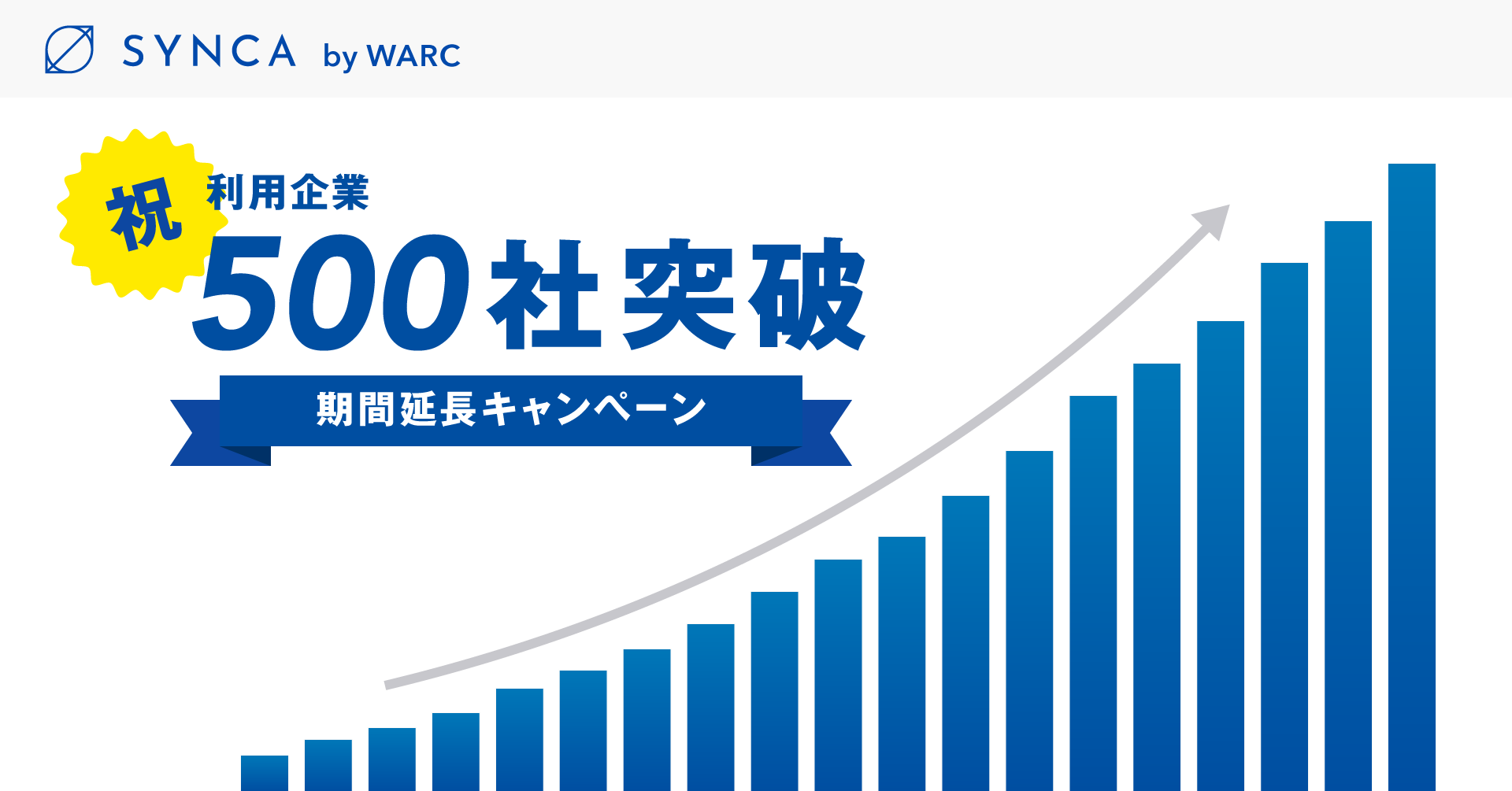 SYNCAの導入社数500社突破記念企画第一弾としてサービス利用期間延長キャンペーンを実施