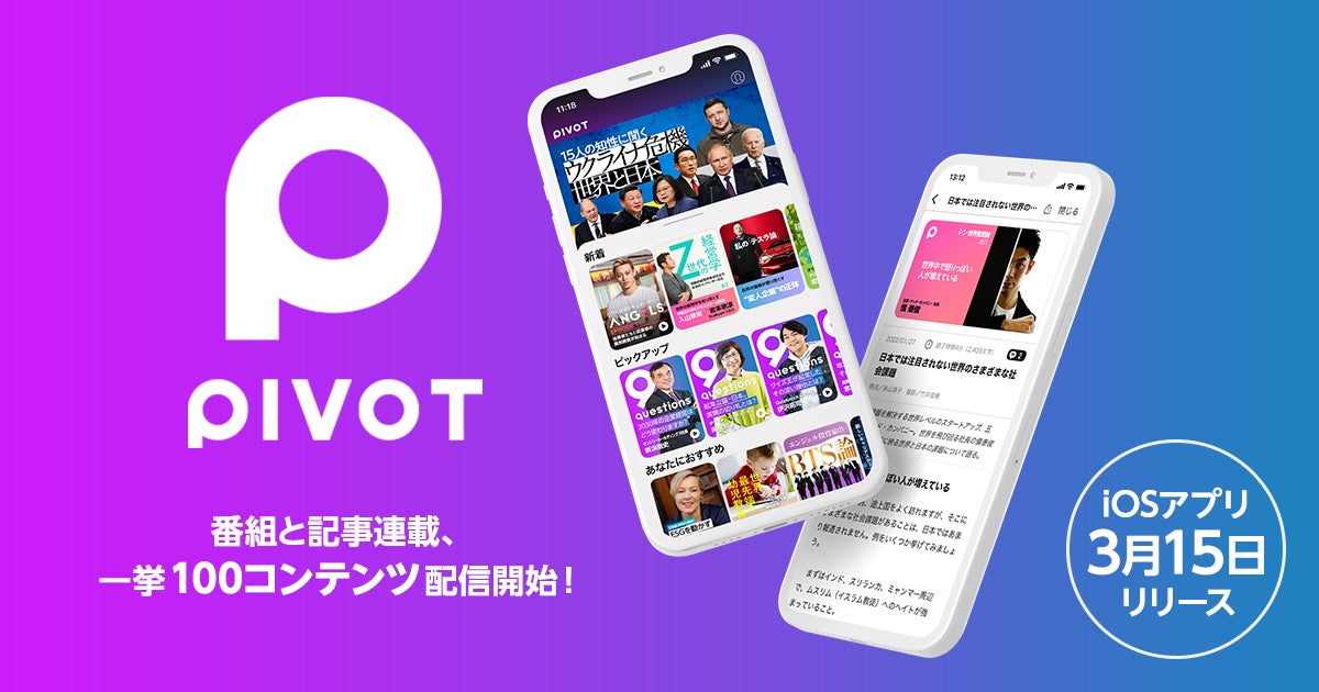 株式会社Link-U(本社:東京都千代田区、代表取締役:松原裕樹、以下Link-U)はPIVOT株式会社(本社:東京都渋谷区、代表取締役社長:佐々木紀彦、以下PIVOT)と共同開発により、経済コンテンツ・アプリ「PIVOT」を2022年3月15日にリリースいたしました。