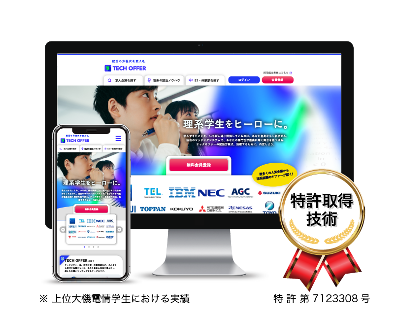 【理系の就職マッチング技術で特許取得】TECH OFFER搭載「大学研究室情報を援用した就職マッチングシステム」~株式会社テックオーシャン~