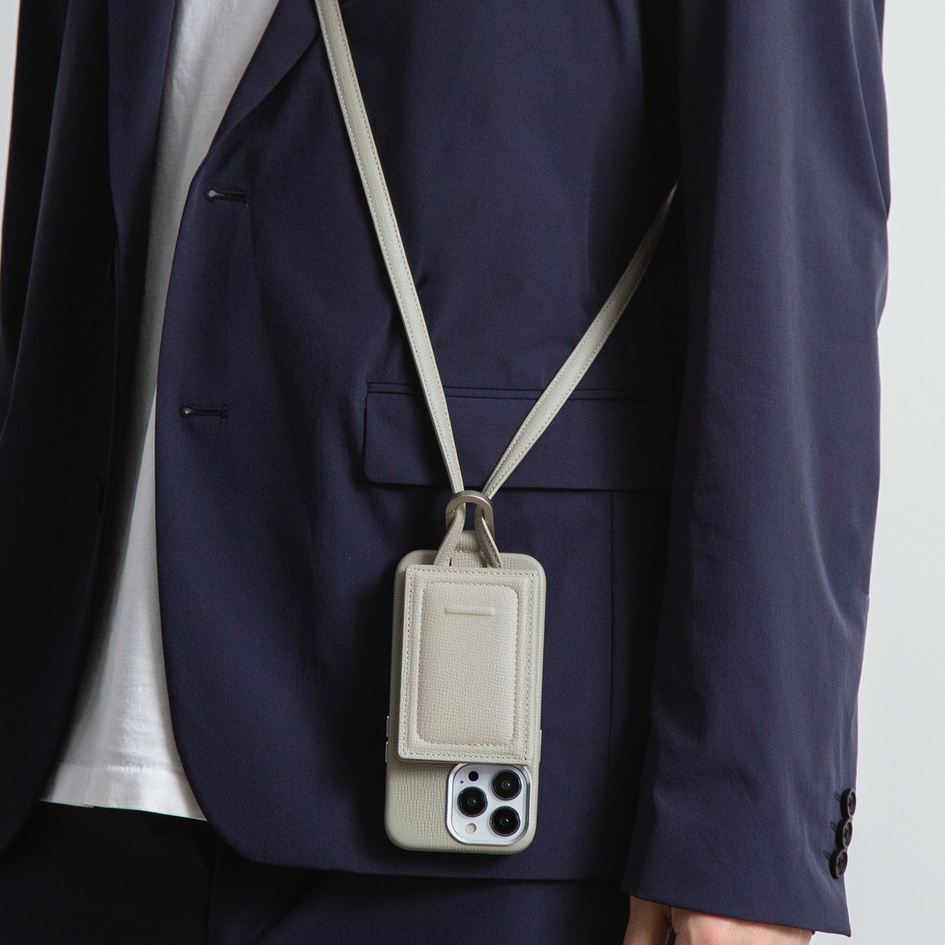 【アジャスタブルレザーストラップ + iPhoneケースセット - ホワイトベージュ】