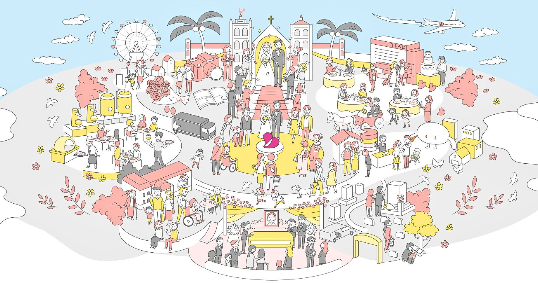 グループの多彩な事業が一目でわかるオリジナルイラスト