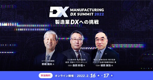 「Manufacturing DX Summit 2022 製造業DXへの挑戦」にコマツ野路氏、日立製作所森田氏、栗田工業植田氏の登壇が決定