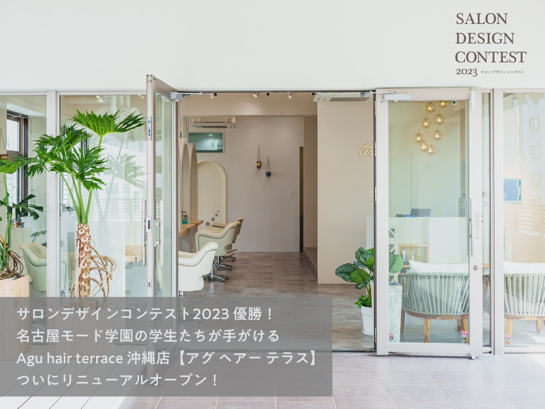 サロンデザインコンテスト2023優勝!名古屋モード学園の学生たちが手がける「Agu hair terrace 沖縄店【アグ ヘアー テラス】」遂にリニューアルオープン!地元企業も建材でバックアップ。