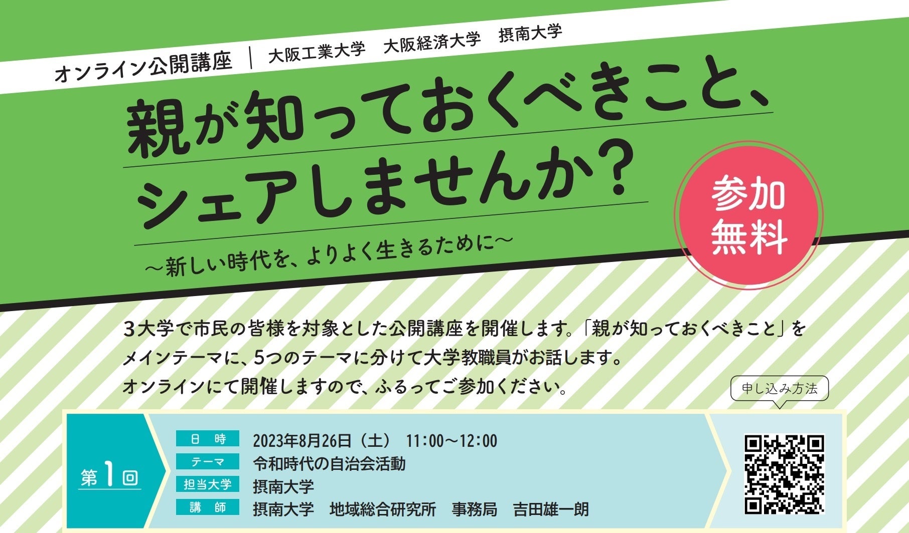 【摂南大学×大阪工業大学×大阪経済大学】自治会活動の在り方を大学が提案!自治会関係者からの生の声で学ぶ! 令和時代によりよく生きるために親が知っておくべきこととは