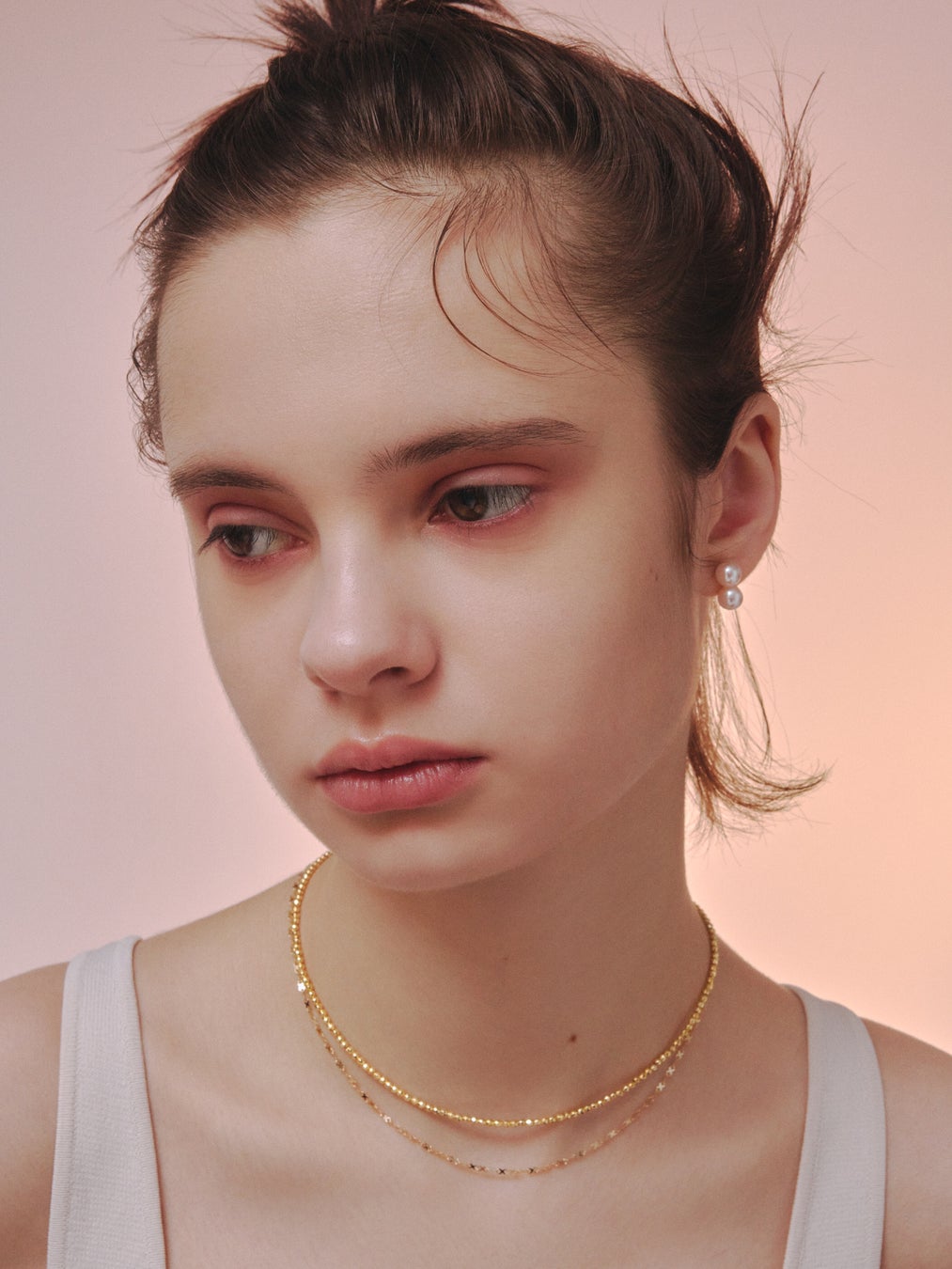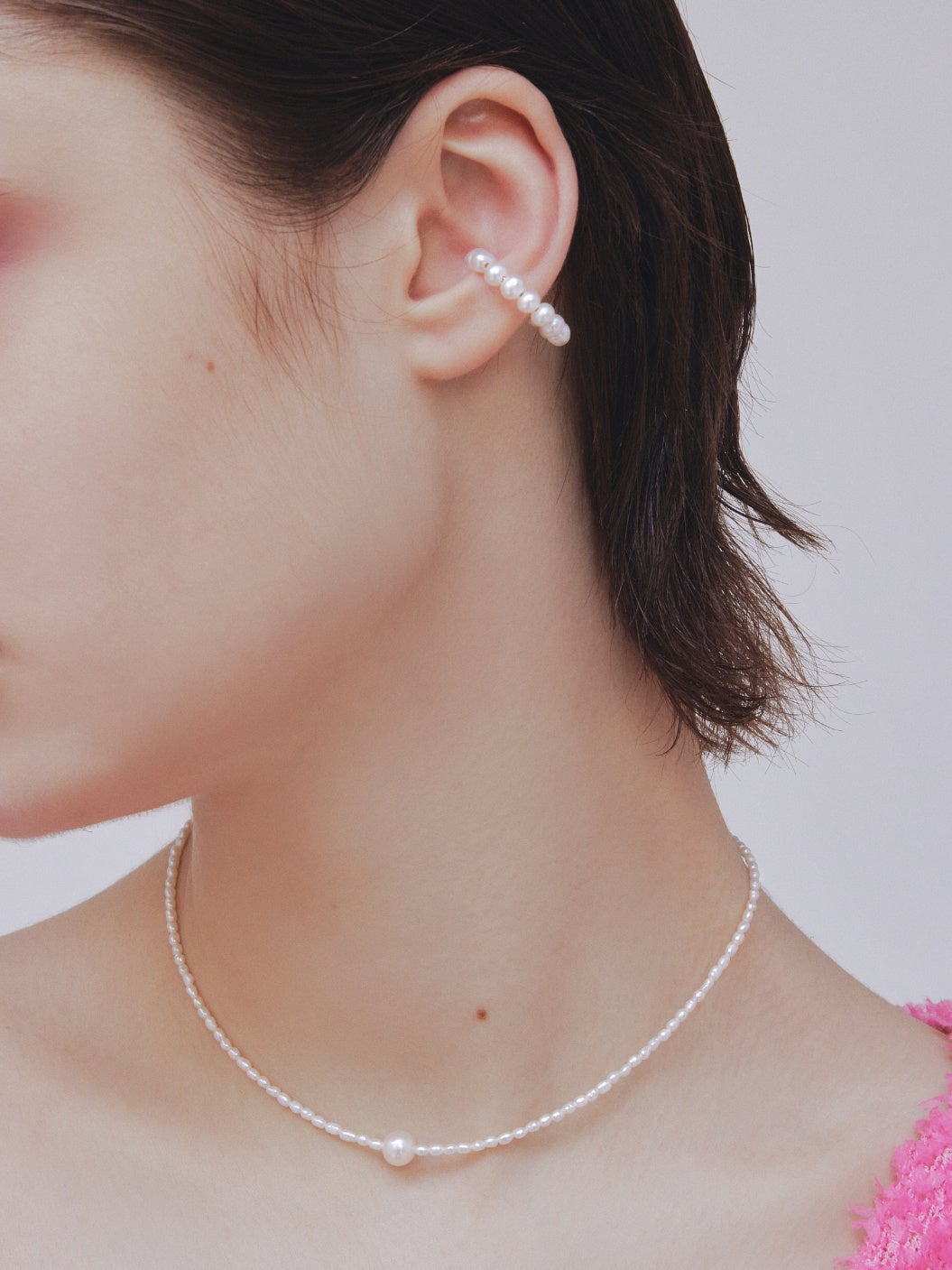 見る角度によって浮かび上がるように見えるパールは、耳元のレイヤードに洗練感のある表情を生み出します。