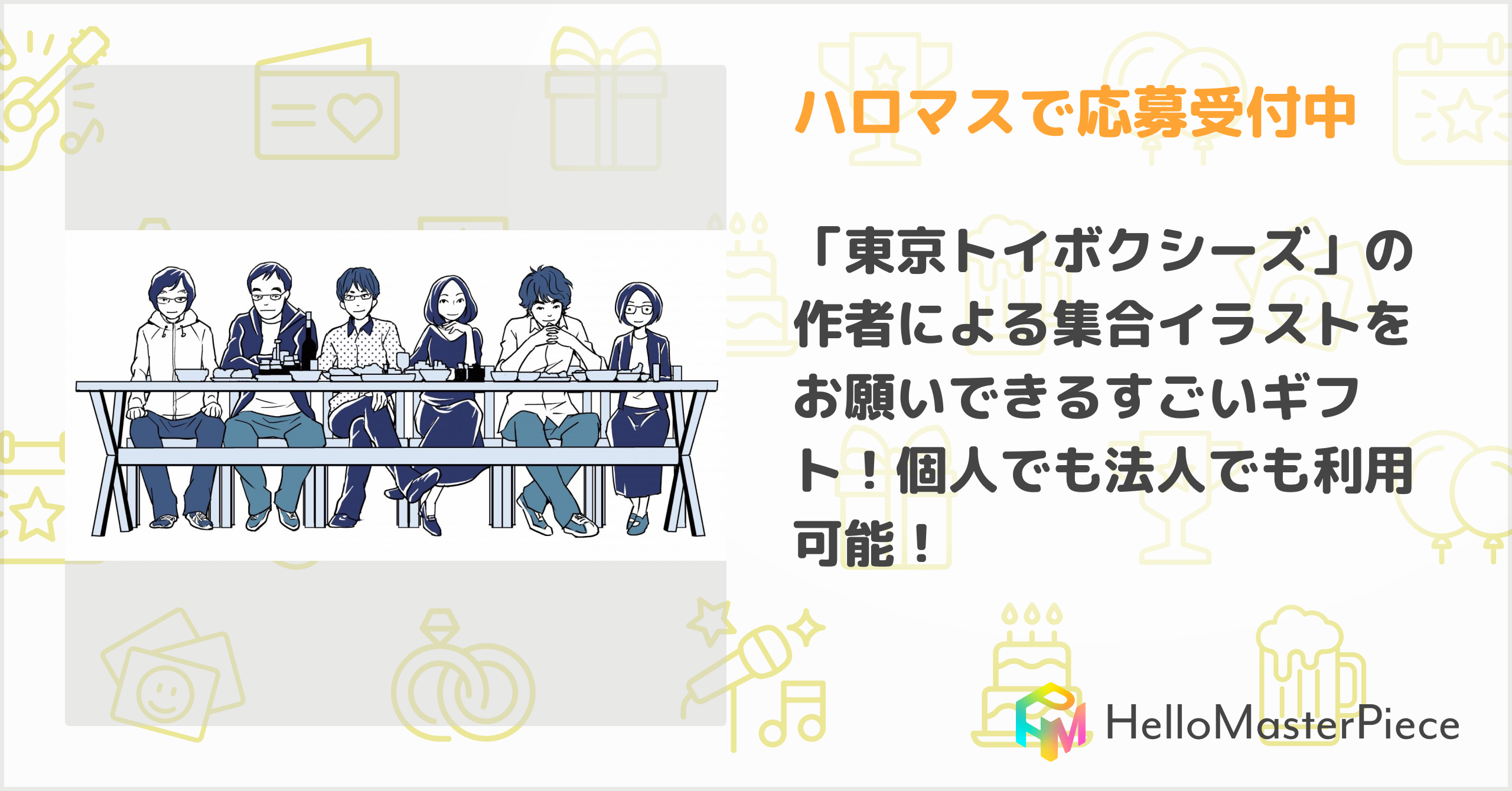 ・「東京トイボクシーズ」の作者による集合イラストをお願いできるすごいギフト!個人でも法人でも利用可能!