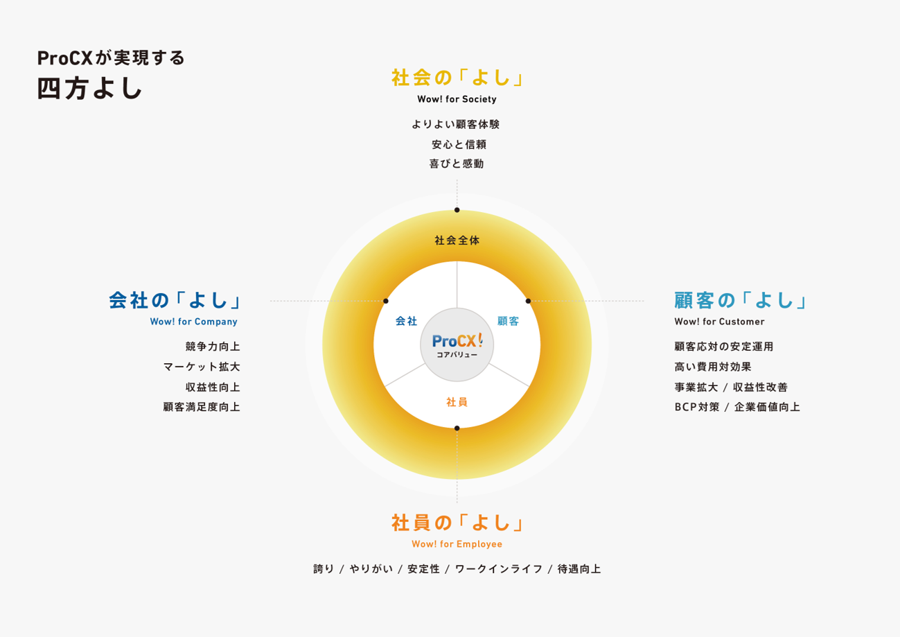 本パーパスを掲げ、安心と信頼をつなぎ、幸せをもたらすCXのプロ集団ProCXとして、社員や顧客に寄り添い、その声を大切に活かして、組織やコミュニティにおけるエッセンシャルな役割として、社会を支え続けられるように進化していきます。
