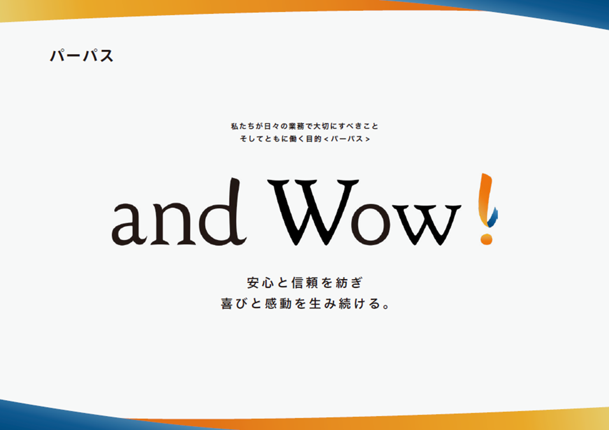 パーパス『and Wow! 安心と信頼を紡ぎ 喜びと感動を生み続ける。』には、プロとして感動体験を生み出すことに加え、コミュニケーションを通じて社会をもっと心地よく、生活者へ喜びと充実をもたらしたいという想いを込めております。