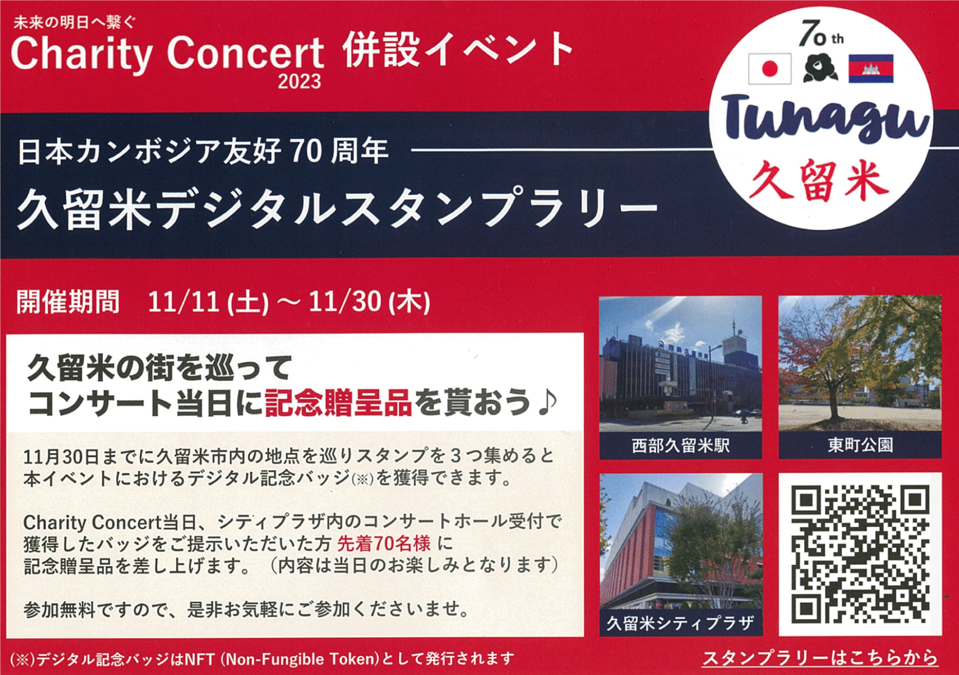 日本カンボジア友好70周年記念チャリティーコンサート連携イベント「久留米市デジタルスタンプラリー」にてGCT JAPANとConnectivがNFT Gardenを使用したNFT配布を実施