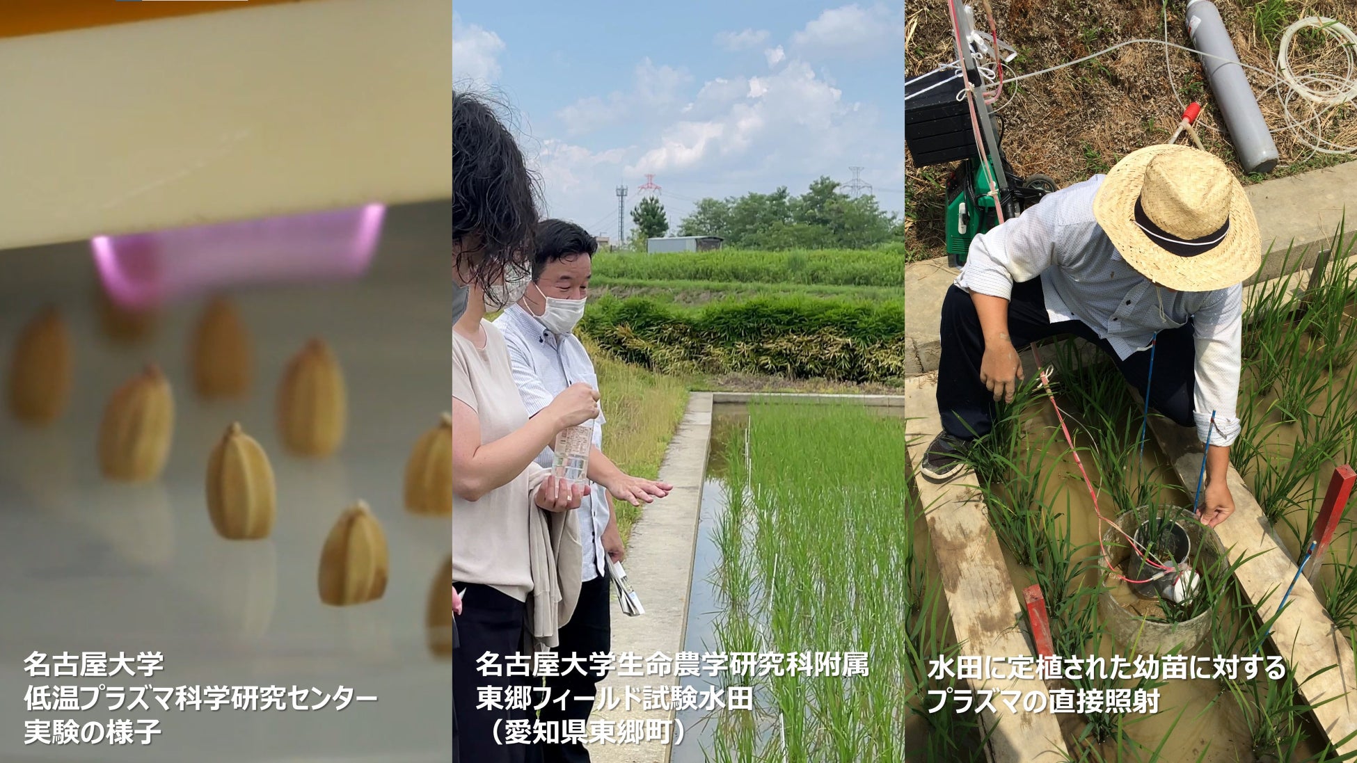 このたび、名古屋大学の堀勝特任教授、橋爪博司特任講師の研究グループは、水稲栽培過程において低温プラズマ処理を行うことにより、イネ苗の成長が促進され、玄米の収量の増加のみならず、玄米の品質も向上することを実証したことをお知らせします。また、本研究では、先行研究で対象とした食用米品種に対してだけでなく、倒伏しやすく一般に栽培が難しいといわれる酒造好適米 (酒米) 品種に対しても有効であることも新たに発見しました。本研究の結果から、様々な種類の作物栽培に対して低温プラズマが広く有効であり、高品質な食料の安定的生産を可能とする新しい技術であることが示されました。