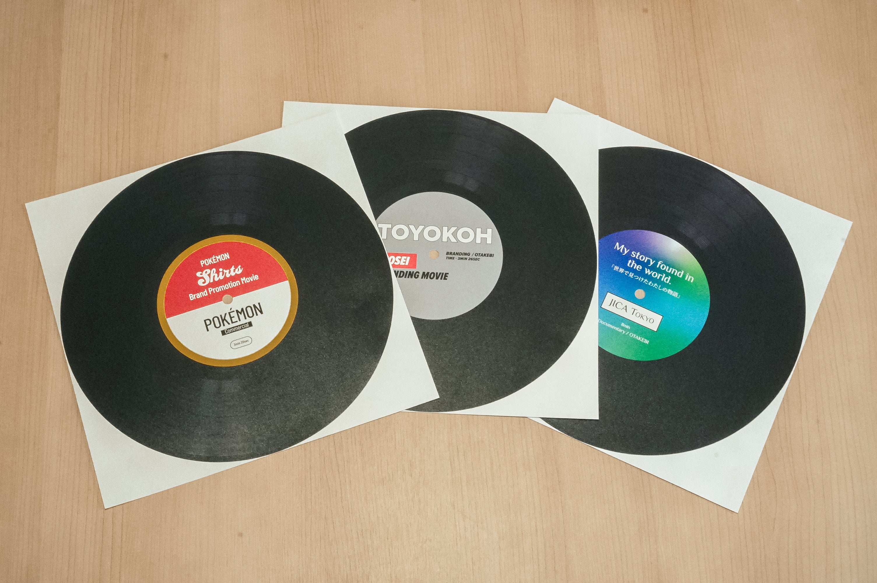 まるでレコードショップ!多種多様な映像制作の実績をレコード型のフライヤーで展示
