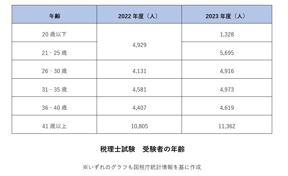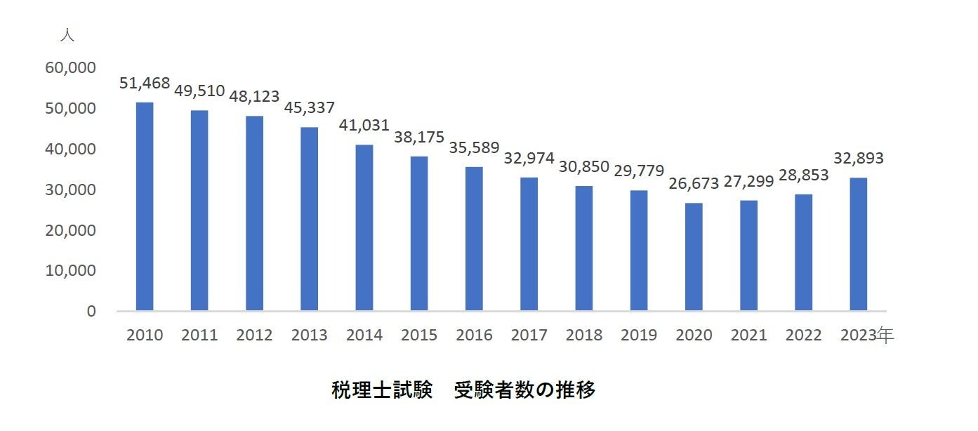 税理士試験の受験者数は2020年まで減少傾向にありましたが、その後回復し、2023年には受験資格の緩和によって若い世代がチャレンジしやすくなり、25歳以下の受験者は対前年比で2,094名増加しています。