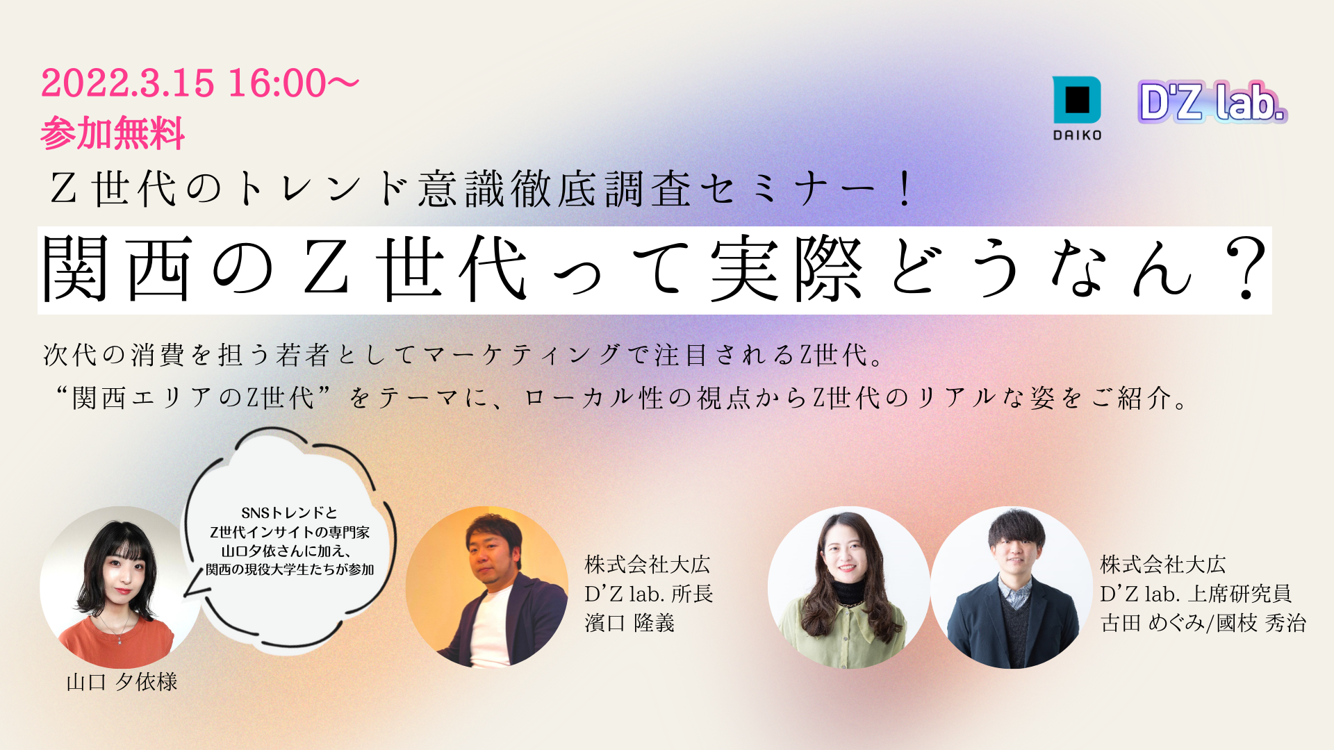 【無料オンラインセミナー】Z世代のトレンド意識徹底調査~関西のZ世代って実際どうなん?~3月15日(火)16:00-17:15