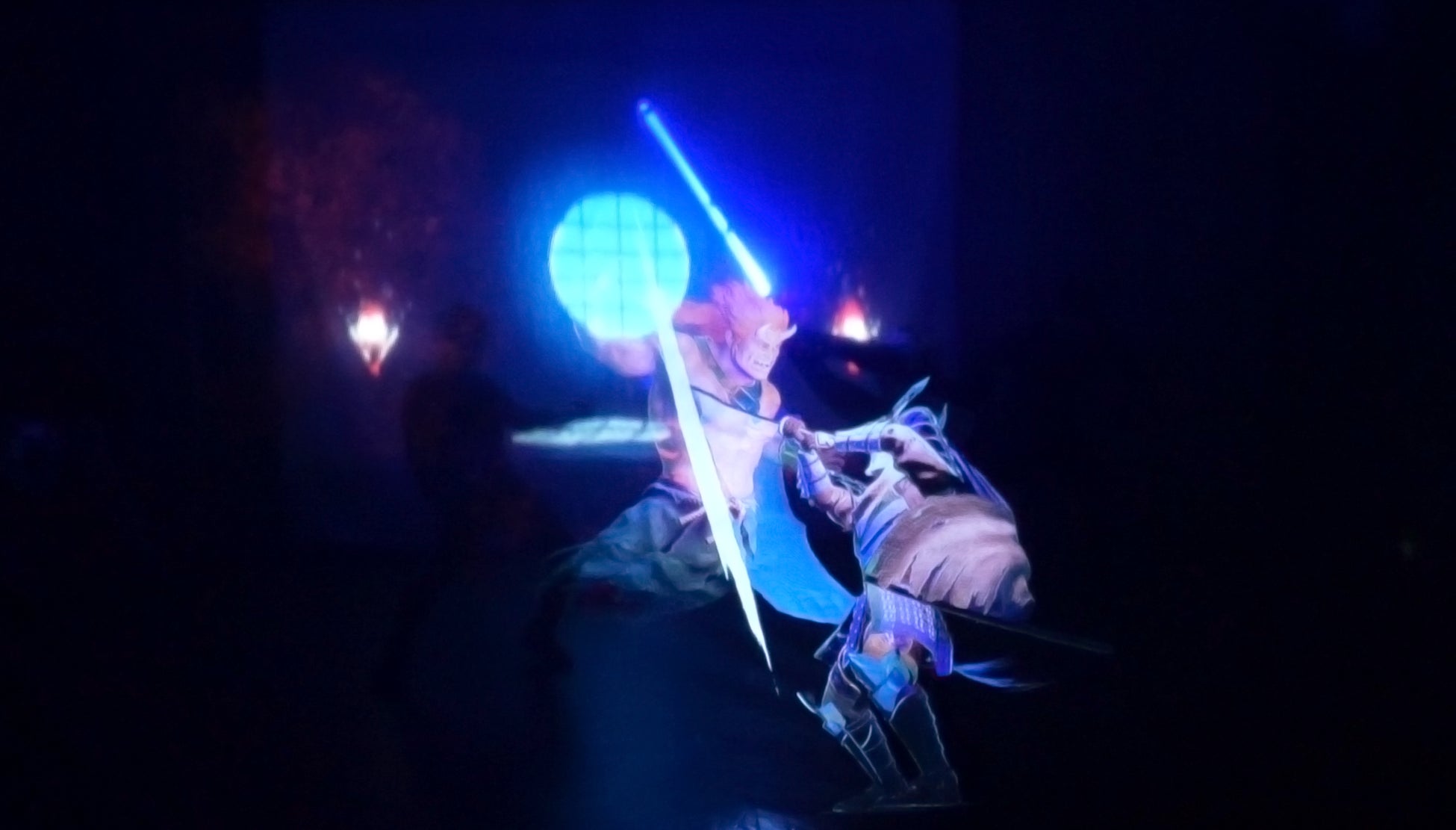 モーキャプアクターと3DCGキャラクターがAR技術を用いて、リアルタイムでアクションを繰り広げる構成に、来場者は驚き、楽しんでいただけたことでしょう。演出の森田淳也(株式会社スピード)は語る。解説役を務めたプロデューサーの岩木勇一郎(株式会社スピード)は、ゲームや映画などで培ってきたノウハウを用いて、3DCGモデリング、アニメーション、エフェクト、モーションキャプチャー、ARなどのデジタル要素を詰め込み、そこにモーキャプアクターのリアルな演技が組み合わさることで体感出来るバーチャライブシアターは、間違いなく世界トップの新たなコンテンツと言えるでしょう。また、日本独自のアクションは、きっと世界を驚かせると思います、と語った。