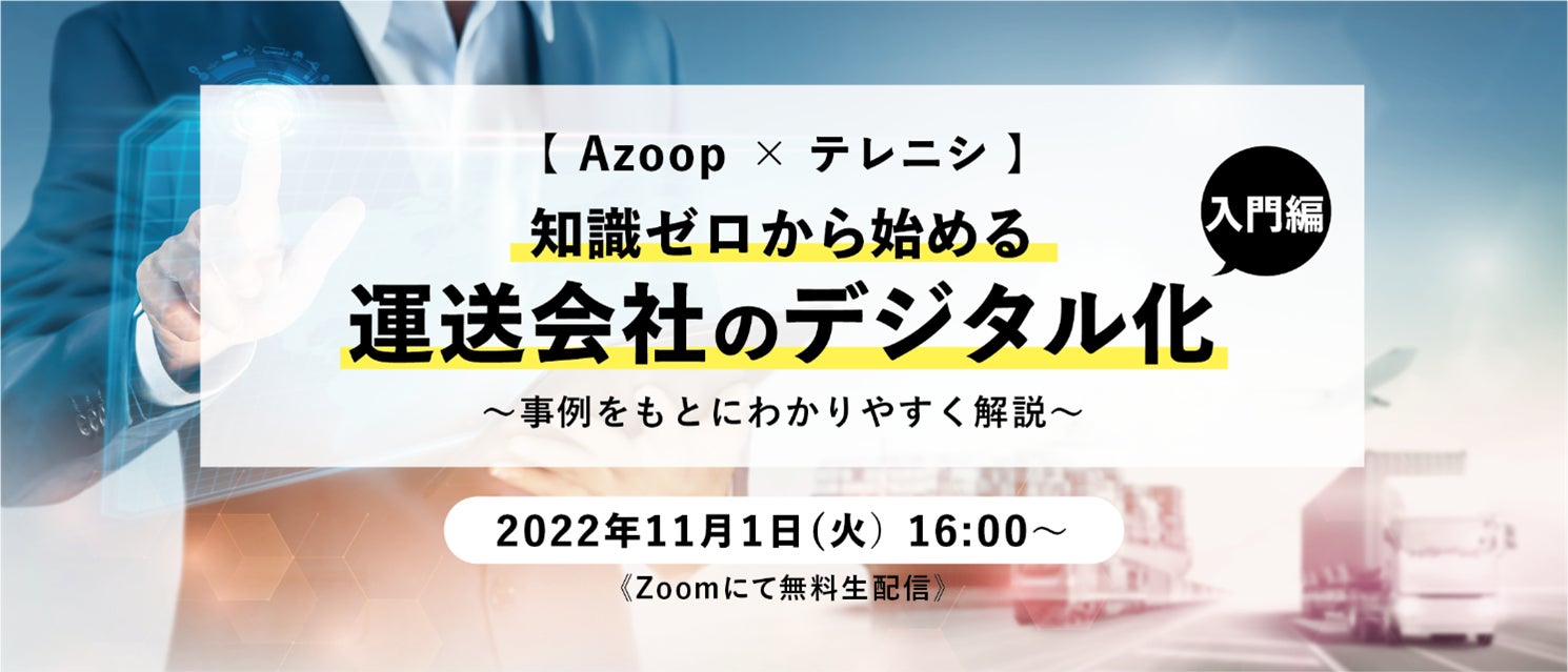 <11月1日(火)トラッカーズセミナー>テレニシ×Azoopによる、「知識ゼロから始める運送会社のデジタル化:入門編~事例をもとにわかりやすく解説~」開催
