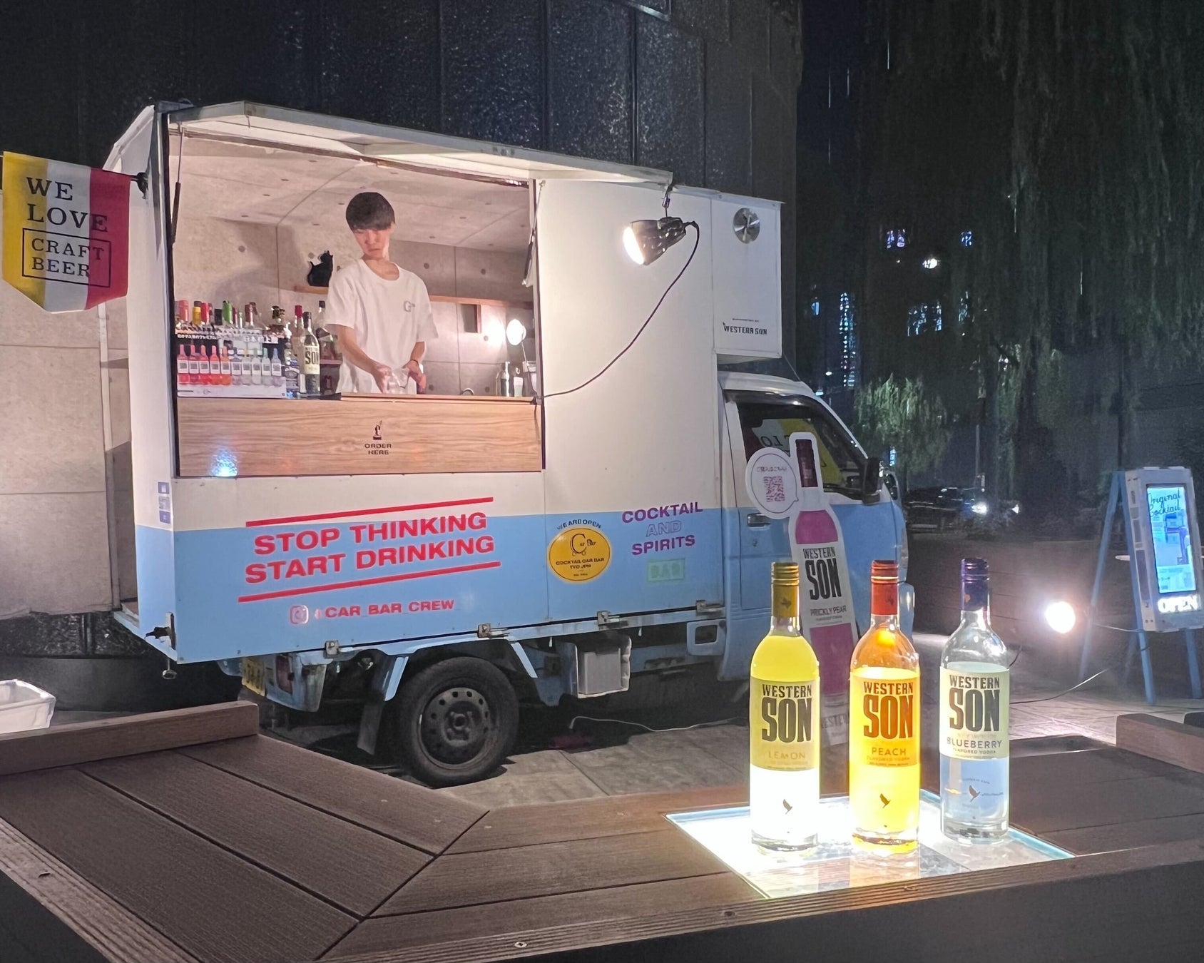 Car Barとの初回取り組みとして、Western Sonの特価提供の他、Western Son販促物提供・Car Barフードトラックのカーラッピングを行いました。販促物デザインはアライアンスパートナーの株式会社ニードにより提供、製造はPXC株式会社により提供しております。今後もSNSプロモーションなどタッグを組んで取り組んで参ります。