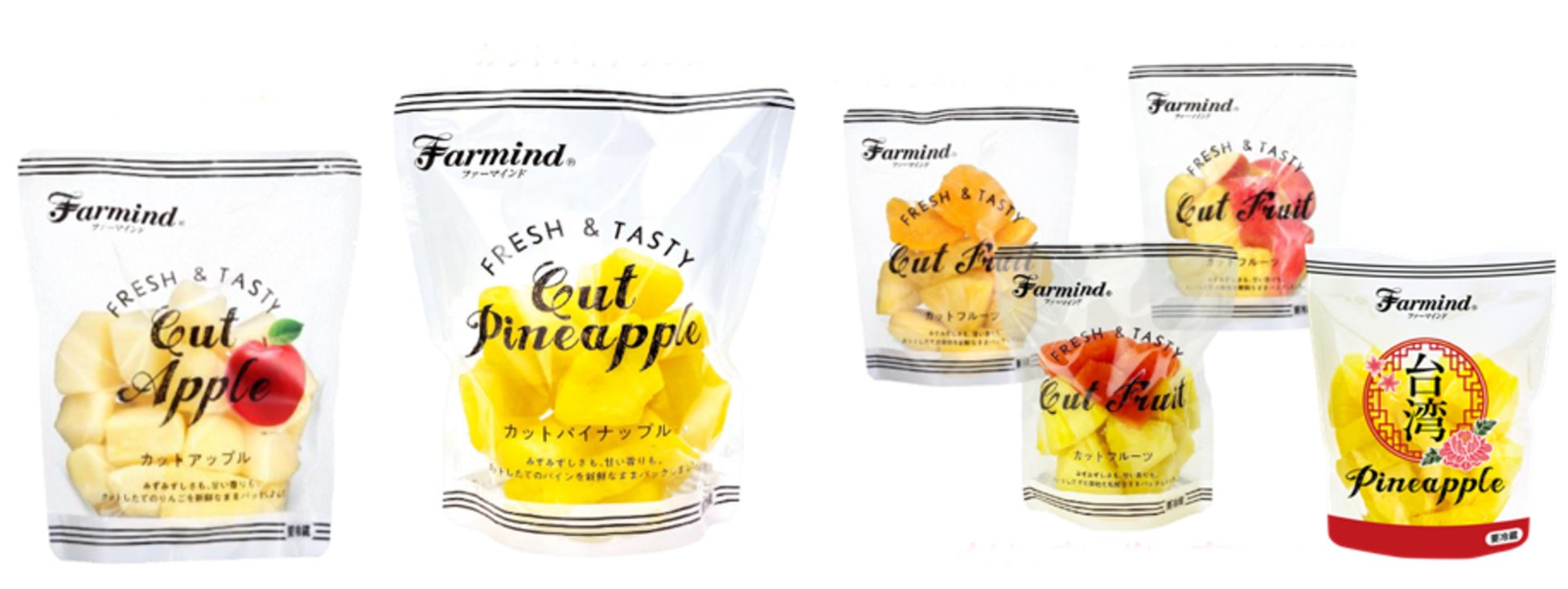 ファーマインドのカットフルーツは、新鮮なフルーツを衛生管理の行き届いたカットフルーツ工場でカットして、甘さも香りも一緒にパックしています。フレッシュなおいしさをそのまま閉じ込め、より食べやすく、手軽で便利にお召し上がりいただける商品です。