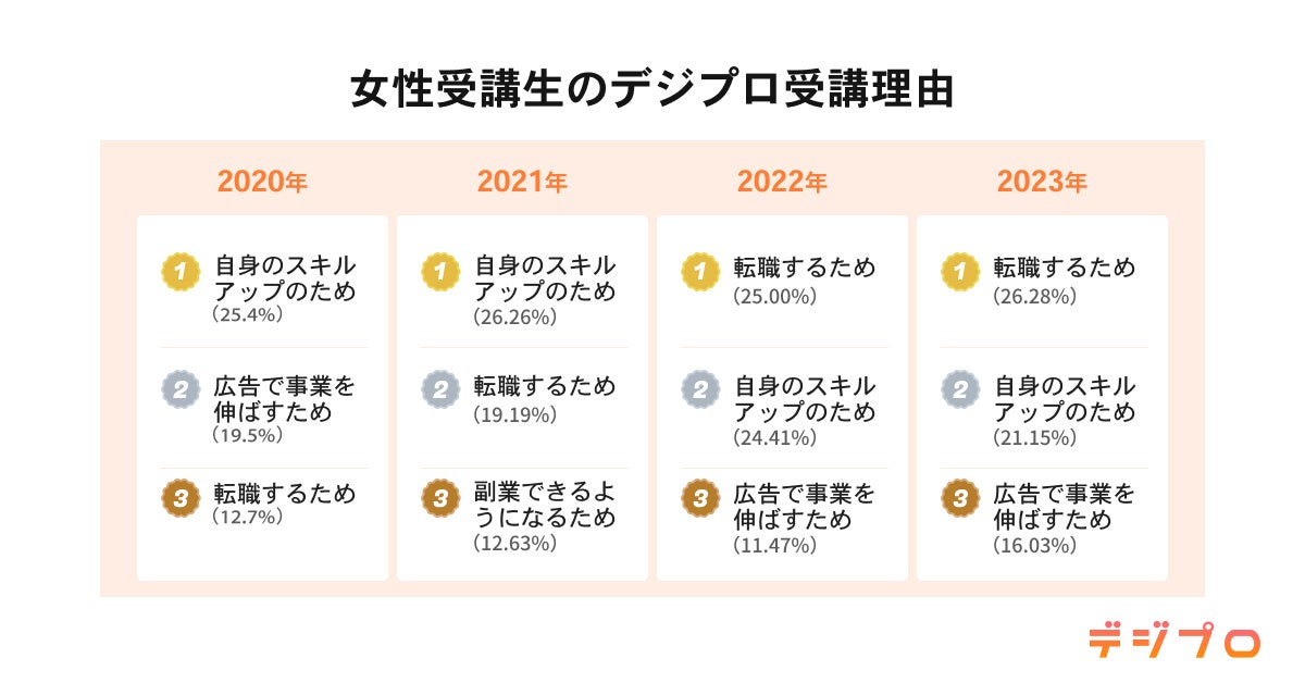 また、デジプロの受講理由もこの4年で変化が見られました。
